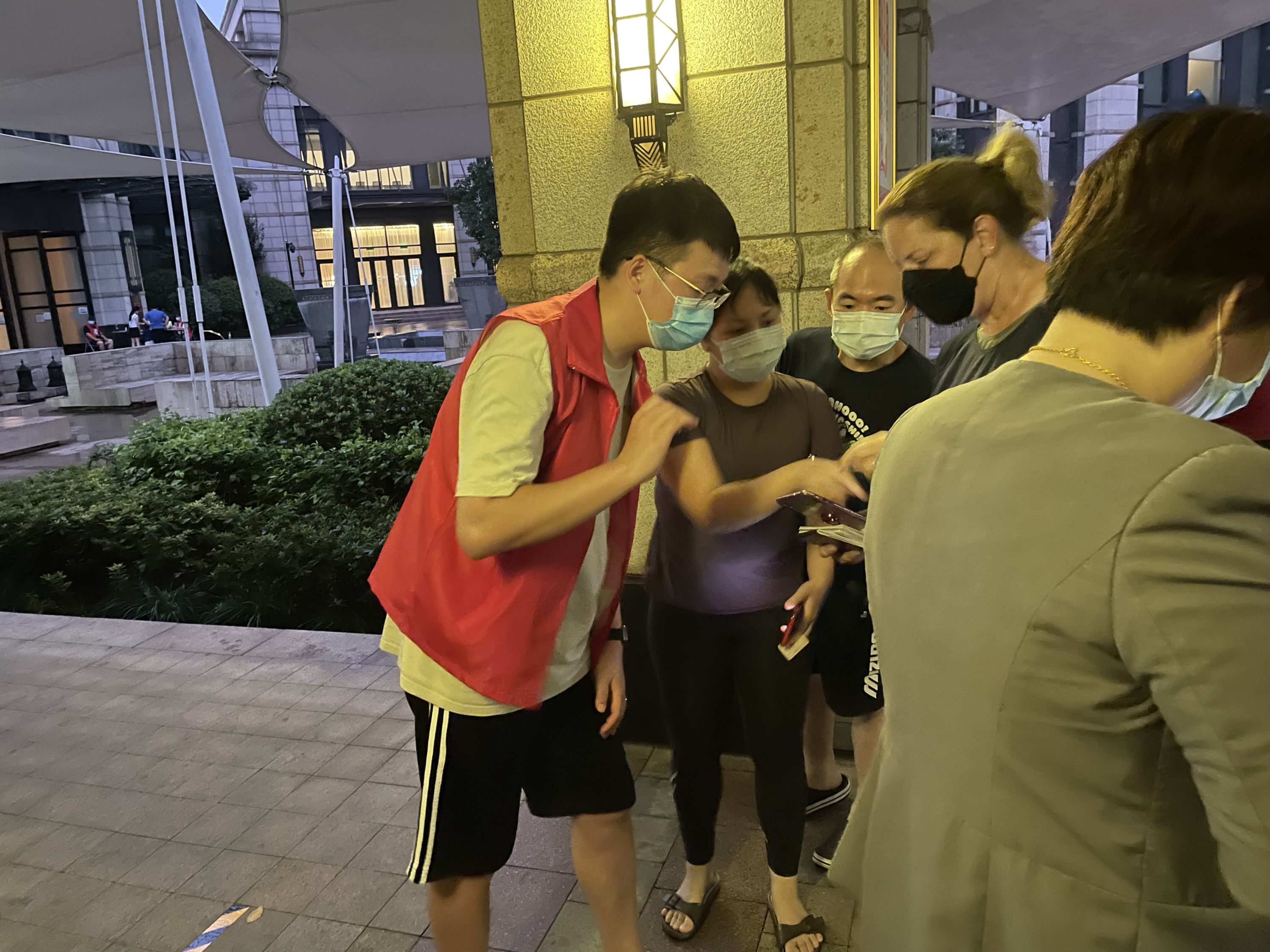 车谷融媒8月12日讯 “金域蓝湾小区住着来自韩国、新加坡、美国的外国居民,为了提高工作效率,我这两天在狂补英语常用对话,练习一些信息填报英文词汇,为他们讲解各项防疫要求,请他们出示绿码,让他们戴好口罩。”8月11日,武汉经开区知识产权下沉党员詹瞩耐心与外国居民交流,外国居民积极配合并用中文对他说谢谢。