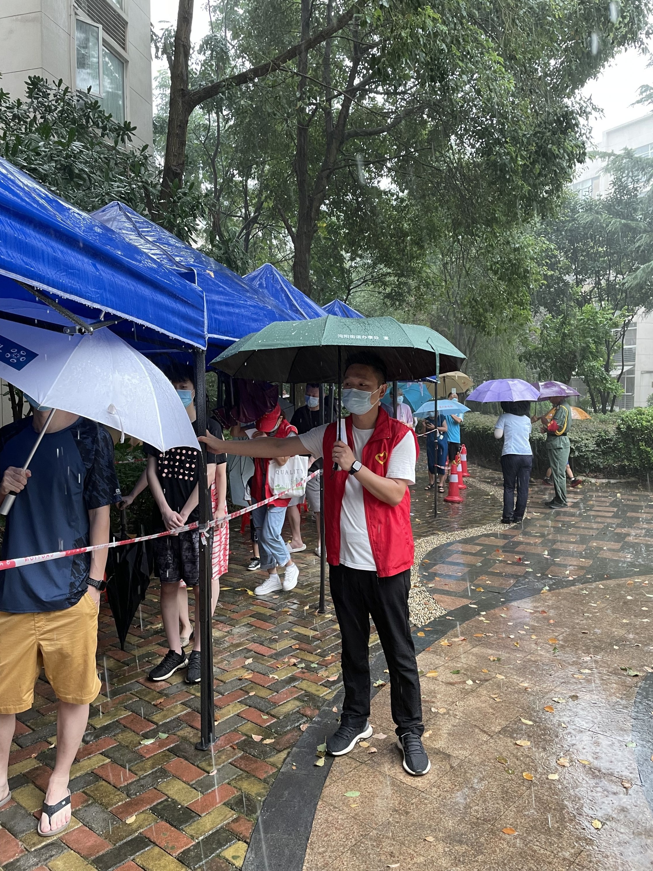 连日来,他协助社区开展核酸检测7700余人次、开具核酸检测证明3800余人次、录入信息2000余条、值守卡口60多个小时……不论酷暑还是暴雨,他高大的身躯都始终挺立在金色港湾社区疫情防控一线,满怀着对党组织的热爱和向往,践行着“若有战,召必回,战必胜”的军人誓言。