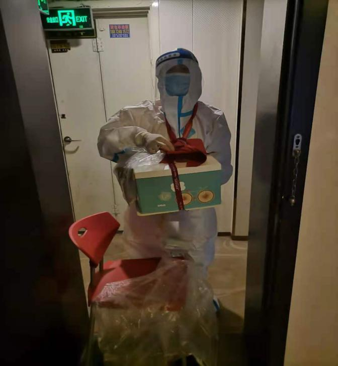8月7日晚,工作人员在梳理信息时发现隔离的刘先生当天生日后,当即为其订购了生日蛋糕,并送去诚挚的生日祝福。陈先生感动万分,他激动地向管理团队发送了一条短信,“此时此刻我无法用语言来表达对你们这些无私奉献最可爱的人的感情,真诚感谢党和政府的关心照顾,非常感谢!”