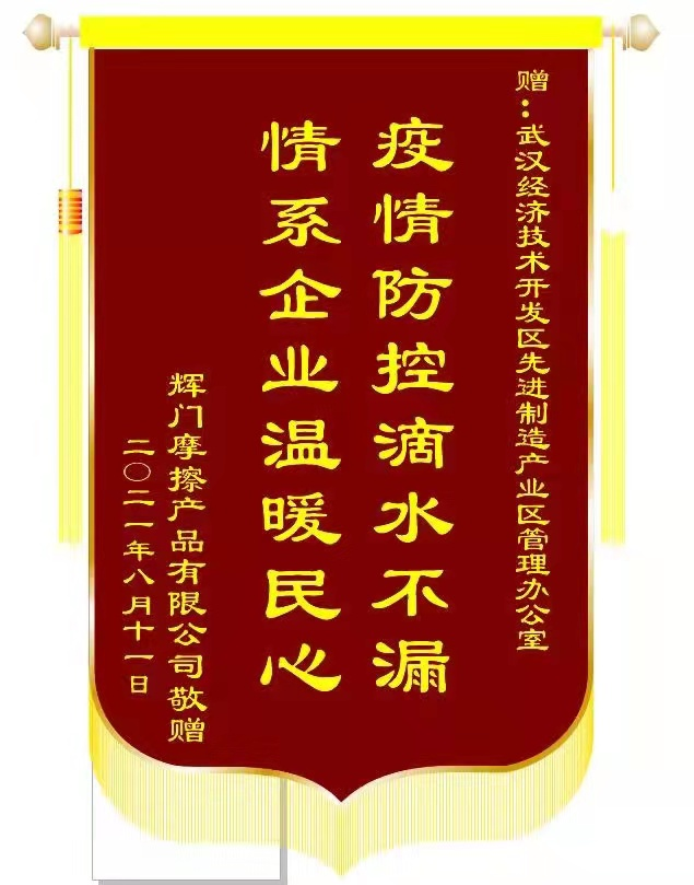 “感谢你们对我们企业的关心和帮助,特送上一面电子锦旗一面。疫情防控,你们全体工作人员辛苦了!谢谢你们,你们多注意安全!”辉门摩擦产品有限公司负责人在电话那头激动地说。