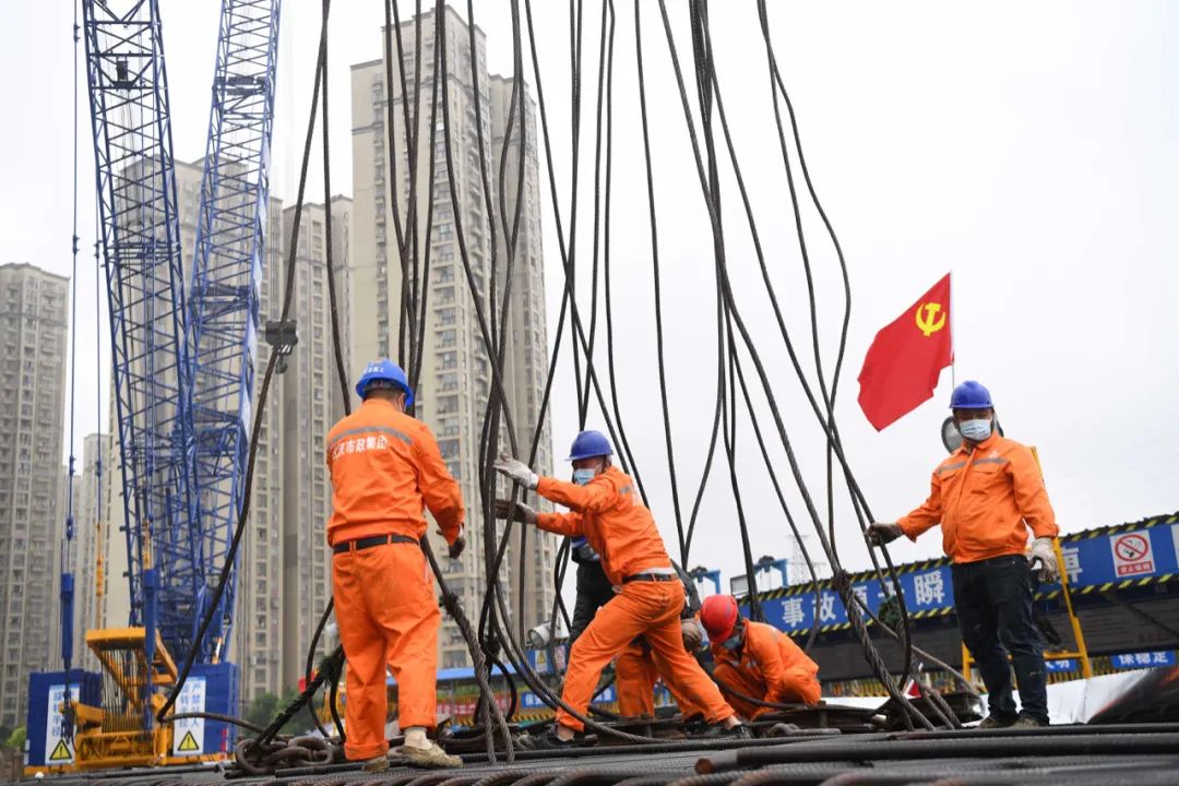 ▲8月15日,两湖隧道(东湖段)风光村盾构工作井施工现场,工人们正在作业。 记者任勇 摄