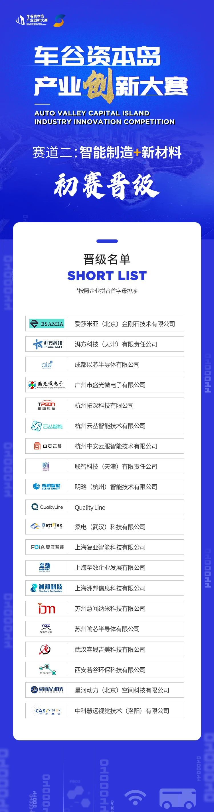 智能制造+新材料赛道复赛将于9月2日-3日线上举办,完整版入围名单如下,让我们拭目以待!
