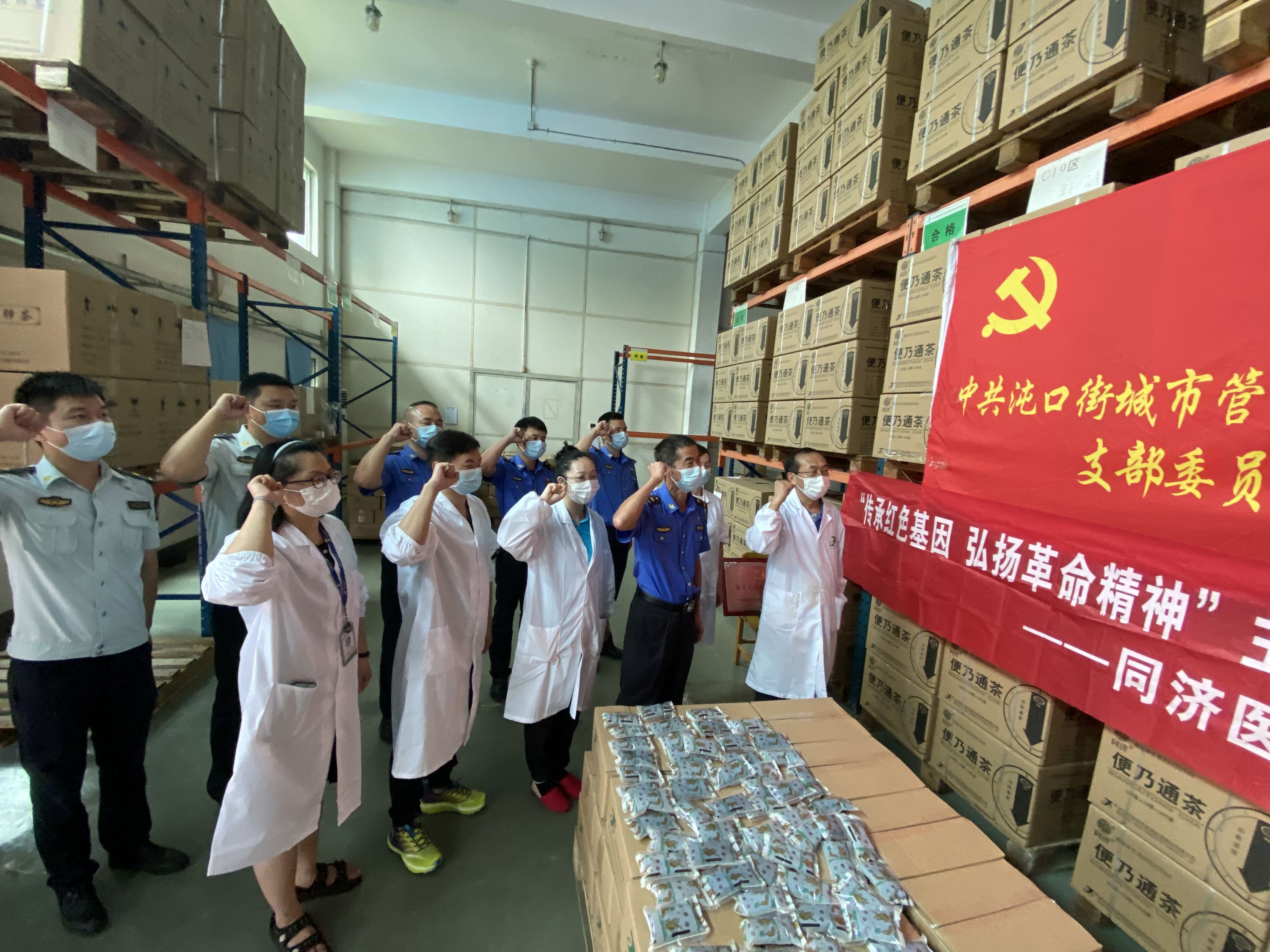 8月17日,沌口街城市管理服务中心党支部联合同济医药党支部,将支部主题党日开在运输中药的防疫一线。城管中心书记张启广带领33名在职党员,参与分装、搬运中药,争分夺秒地为沌口街道内14个社区配送中药3万余包,居民拿到手中的中药都还是温热的,解决了同济现代医药公司的中药运输问题。