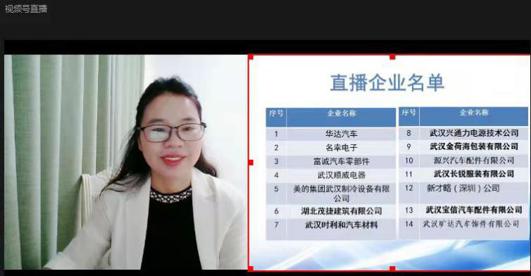 武汉经开区人力资源局全面落实防疫期间“不见面”要求,将线下招聘活动搬到线上。8月,组织开展了2场“筑梦经开 就业起航”视频直播招聘会,名幸电子、华达汽车、美的集团武汉制冷设备有限公司等区内31家企业提供了2000余个招聘岗位。