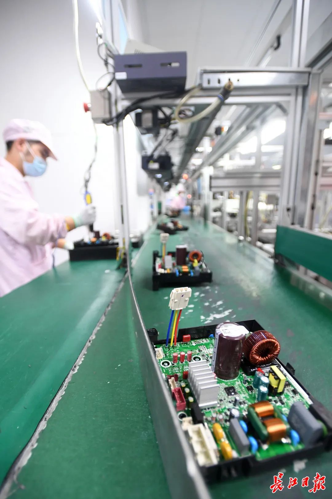 坐落在武汉经开区的格力电器控制器分厂主要生产“空调大脑”,8月22日,记者在该厂看到,生产线“火力全开”,每天分为两班满负荷生产。
