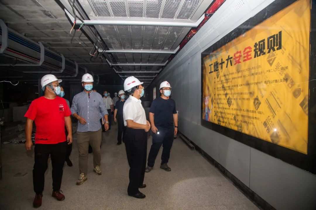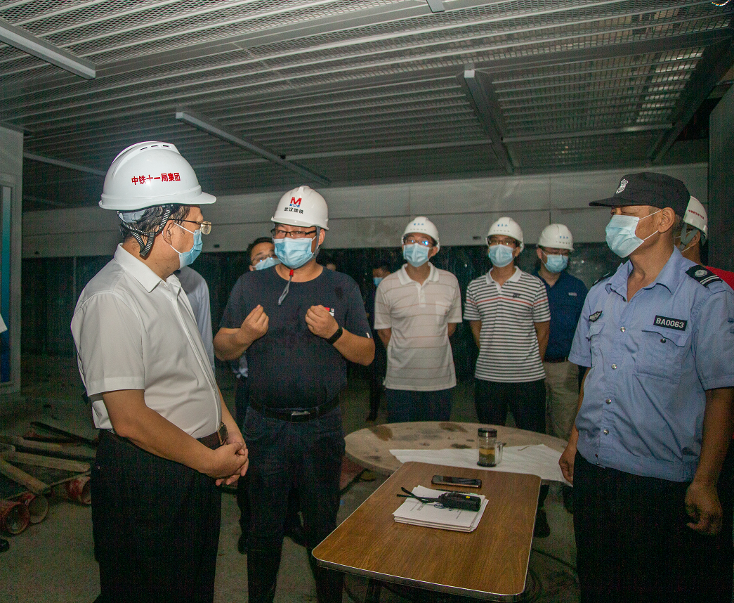 刘子清来到16号线沌口站,详细了解工程建设进展,协调解决相关问题,叮嘱施工人员戴好口罩,做好防疫措施。