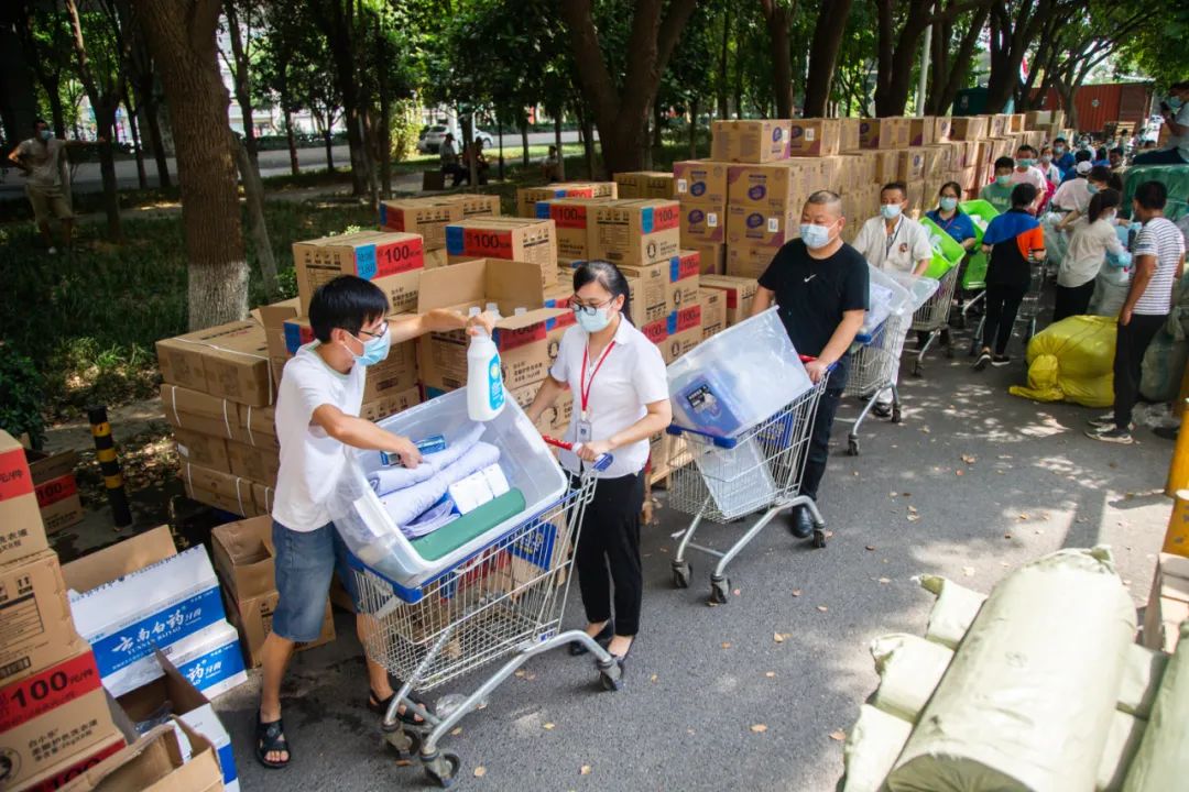 封闭管理区域内群众的生活物资怎么解决?自沌口街被划为封闭管理区以来,沌口街党工委组建了28支近1000人的保供志愿者队伍,共组织线下集中团购126批次,团购套餐55000多份,保障封闭管理区居民正常生活。