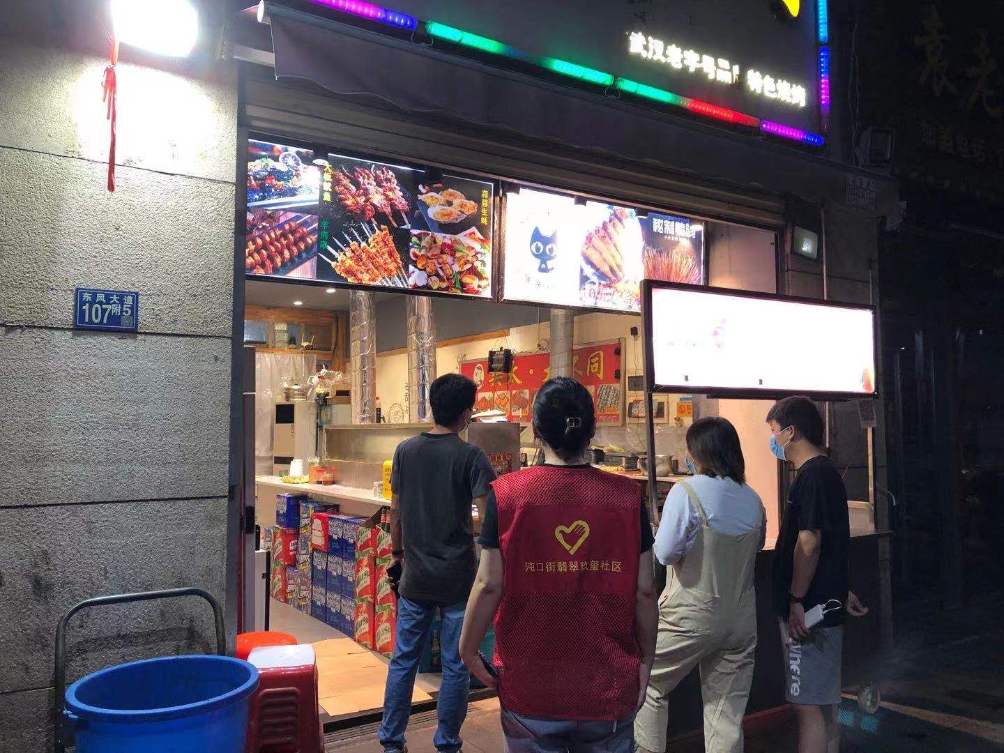 为打造良好的营商环境,接到解除封闭管理的消息后,翡翠玖玺社区按照上级文件要求,结合辖区实际,社区、物业立即行动,第一时间将万达金街的卡口围挡拆除,将卡口移到小花园入口,同时社区纪检委员牵头,在商业街上安排工作人员、志愿者进行巡逻检查,既保证写字楼居民区的精准防控,又兼顾商业街的常态化防控,以最大限度为辖区商户提供良好的经营环境。以理发店、餐饮店、旅店的登记和防控宣传为切入点,提醒商户做好场地消杀、顾客登记、测量体温、消防安全等工作,确保将复工复产防控措施落到实处。