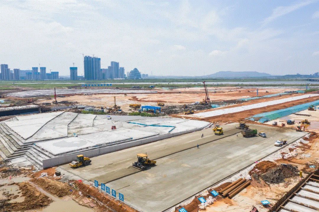 吊臂起落,机器轰鸣,车辆穿梭,武汉智能网联汽车测试场项目建设如火如荼。