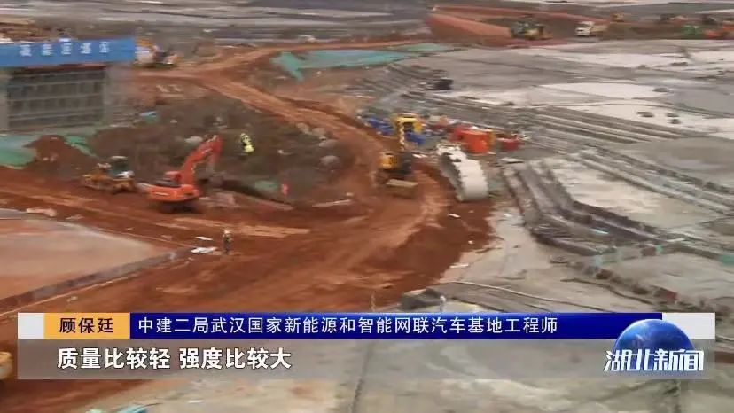 中建二局武汉国家新能源和智能网联汽车基地工程师顾保廷:“我们目前所处的位置就是高填区,它做的有发泡轻质土,它质量比较轻强度比较大。”