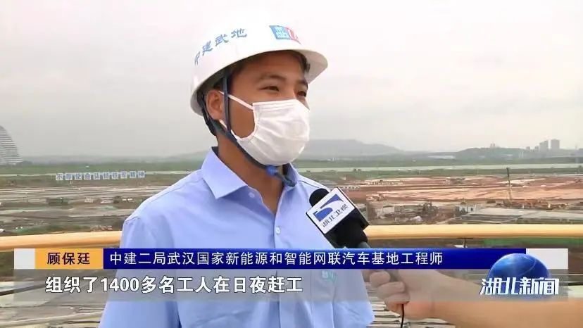 中建二局武汉国家新能源和智能网联汽车基地工程师顾保廷:“组织了1400多名工人在日夜赶工,分三班倒每班八小时,然后到今年年底有些功能区达到基本的试运行条件。”