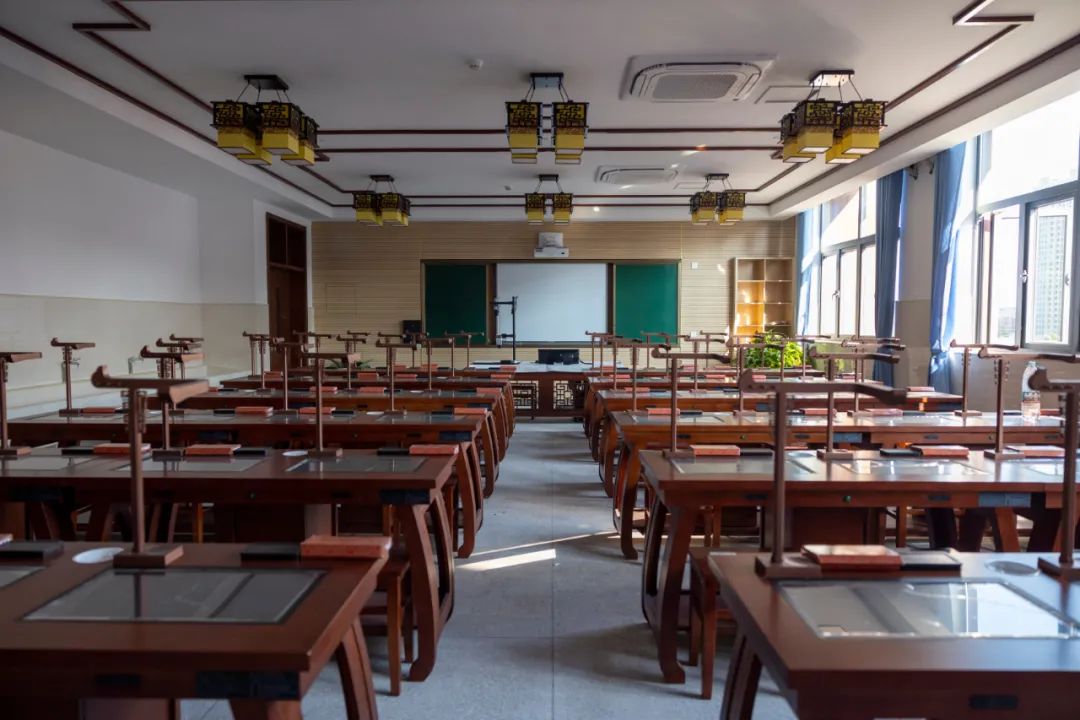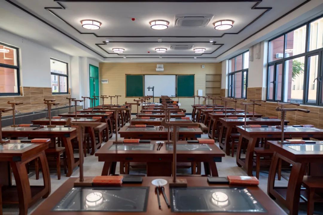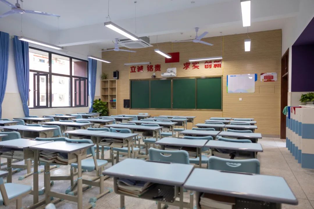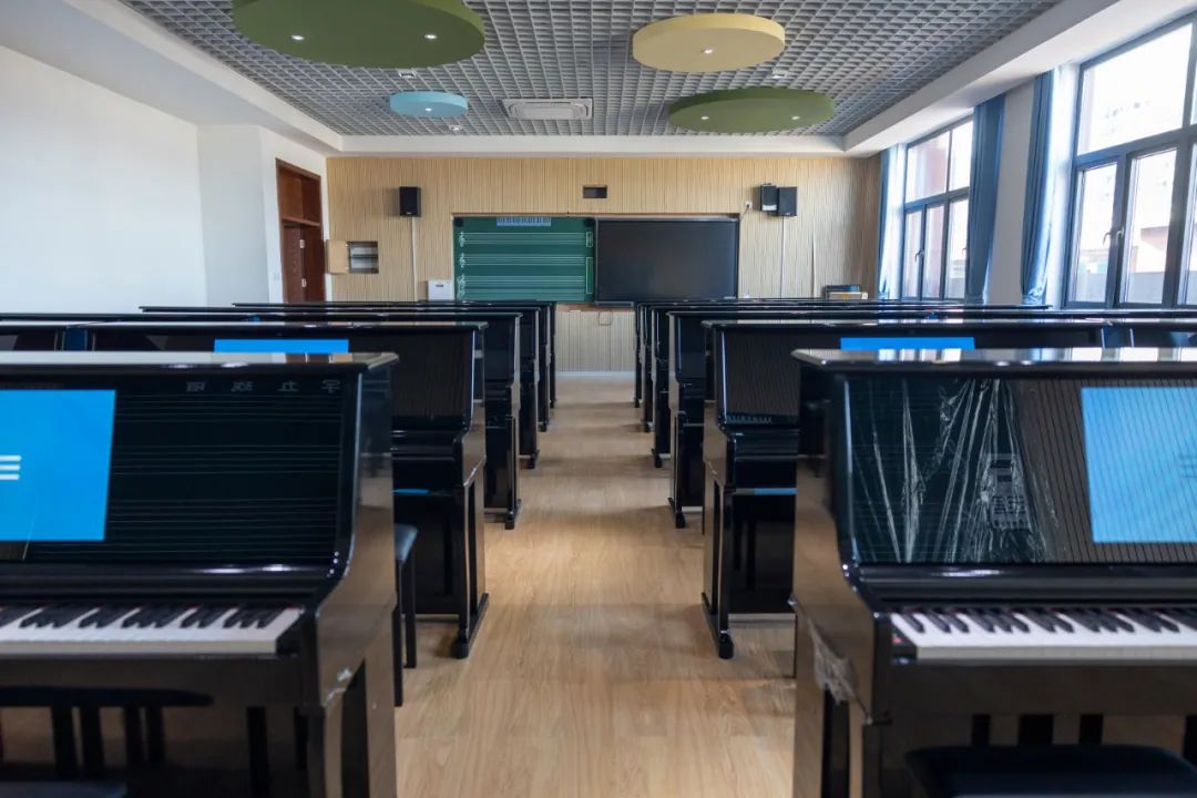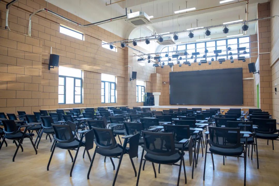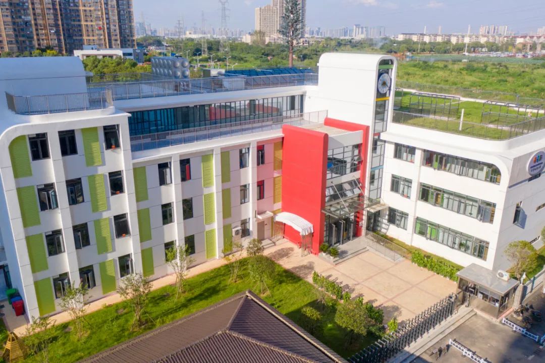 该校建有教学楼、综合楼与多功能报告厅,另配有一栋两层楼食堂和一个综合体育馆、一座300米跑道的体育场,科技馆、创客空间、数字书法教室、音乐创客教室、AI人工智能实验室,英语口语教室、陶艺室等39间功能教室一应俱全。
