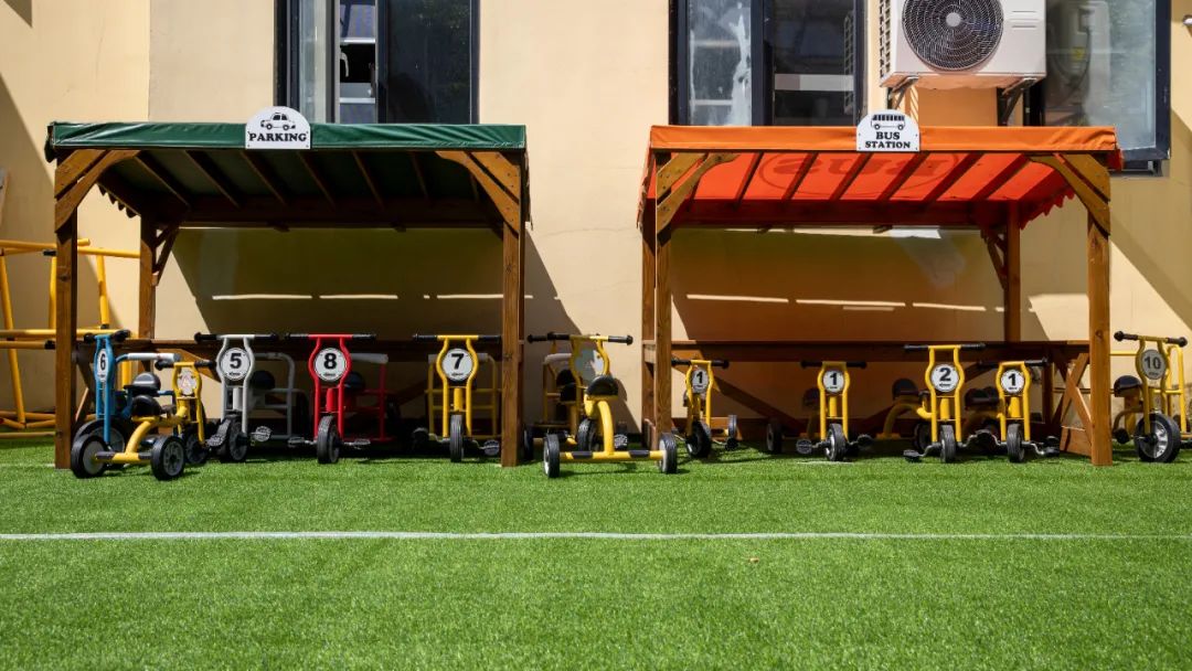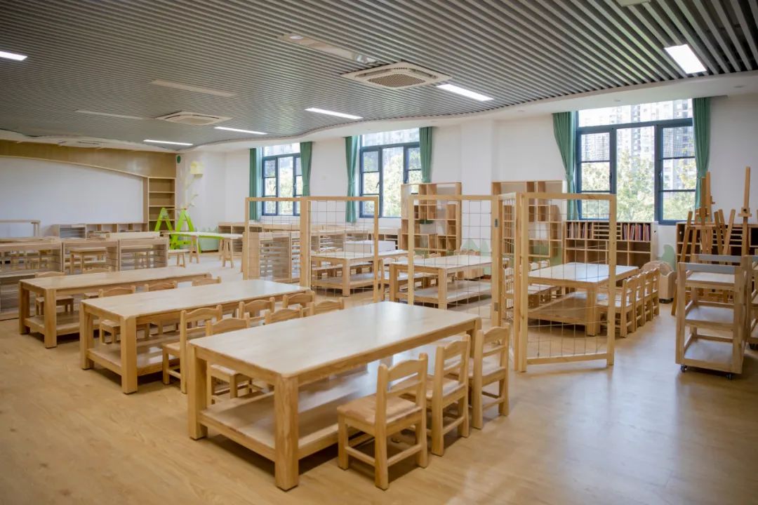 幼儿园里有科技馆、绘本馆、美工坊、音体室等功能室。户外活动场地达3700余平方米,玩沙区、运动游戏区等一应俱全,为幼儿提供了丰富趣味的游戏生活体验场所。