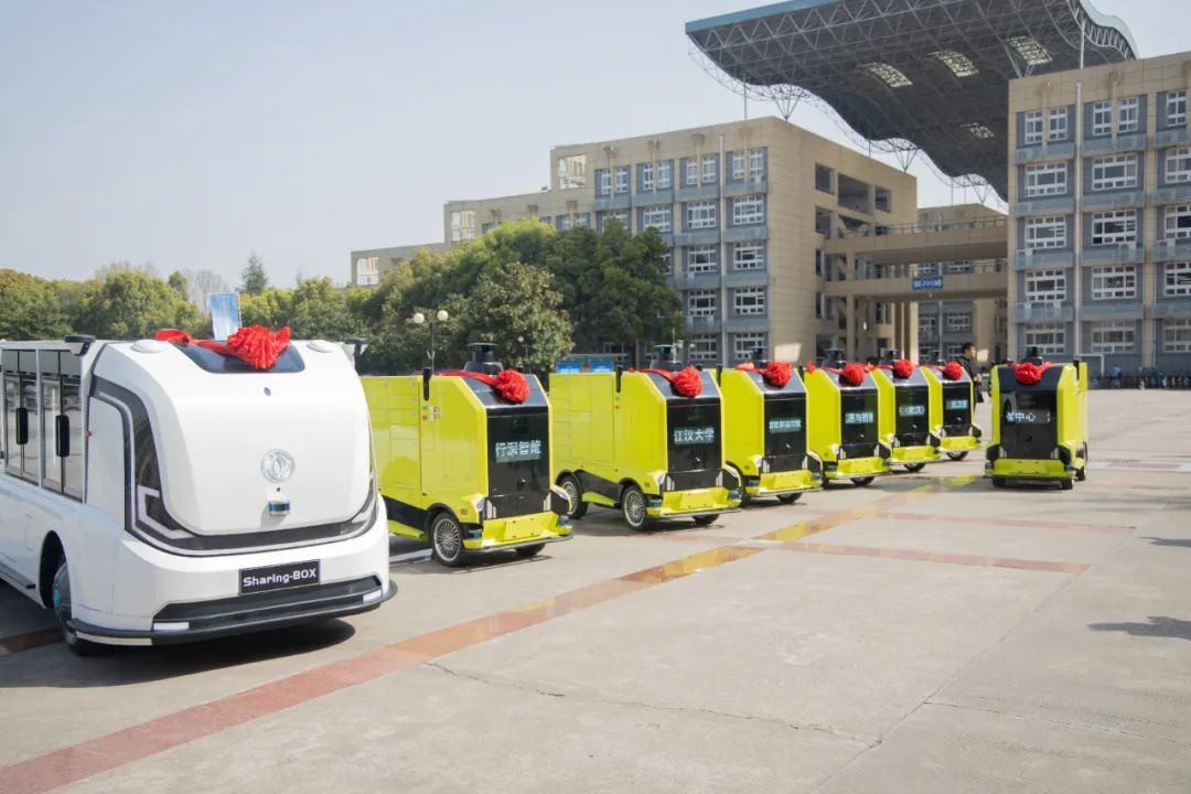 东风领航项目100余台Robotaxi自动驾驶出租车在公开道路示范运营,累计行驶里程200多万公里;发起国内最大规模的车路协同应用,为1万辆社会车辆加装智能网联终端,开行24条智能公交线路;在江汉大学,进行校园无人驾驶物流配送。