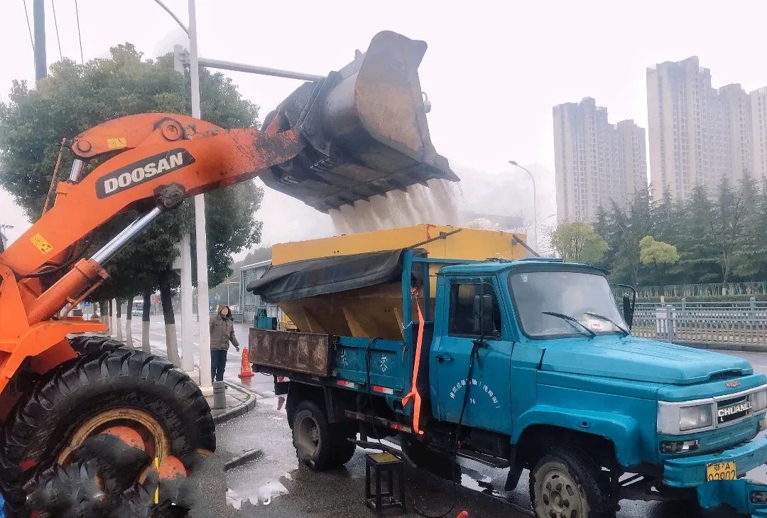 区城管局按照融雪防冻新标准,出动巡查车辆20余台、巡查人员180余人,每两小时对东风高架、东风大道、三角湖路、芳草路、硃山湖大道等重要路段及东风大道高架桥、汪家嘴立交桥、神龙通道、后官湖大道人行天桥等20座桥梁及下穿通道进行巡查、测温,对易结冰道路和点位进行预撒盐。
