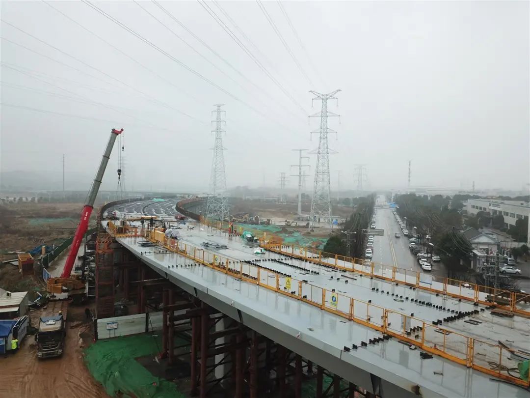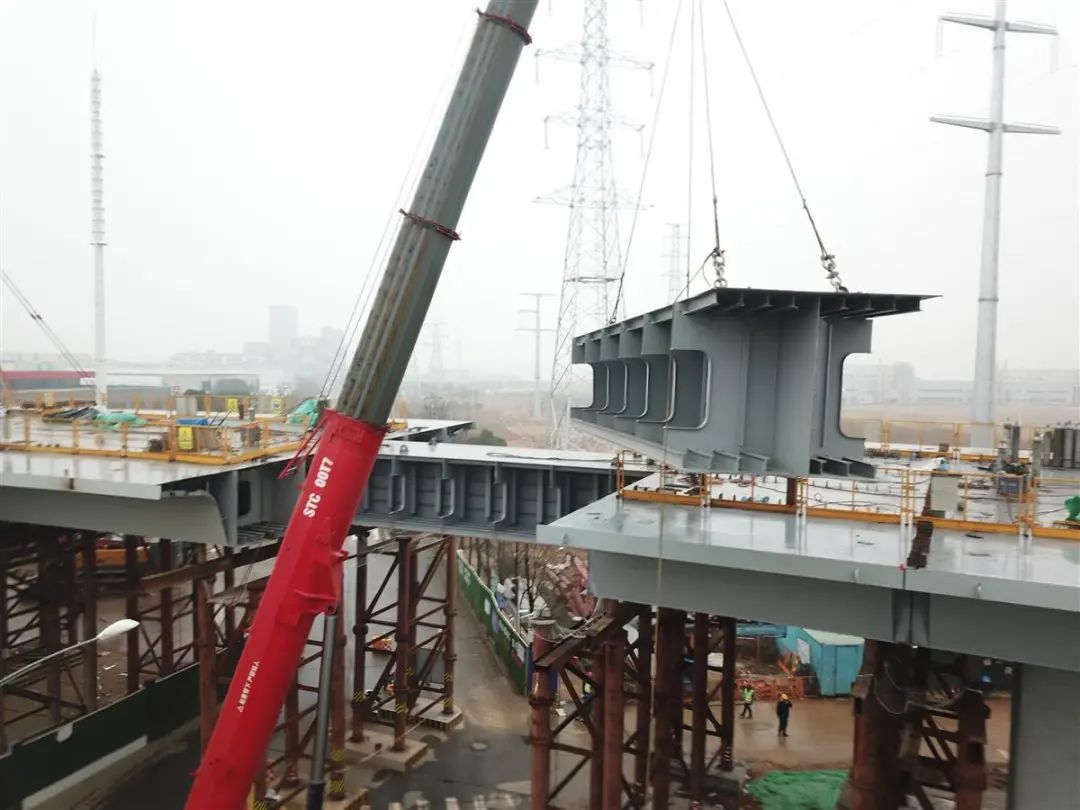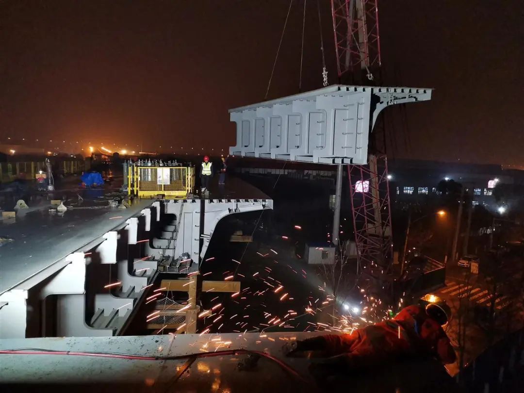 施工过程中,中交二航局龙灵山项目部提前谋划,优化资源组织,克服管线密集,场地狭窄,交通流量大,吊车站位空间有限等不利因素,如期完成钢箱梁合拢吊装工作。
