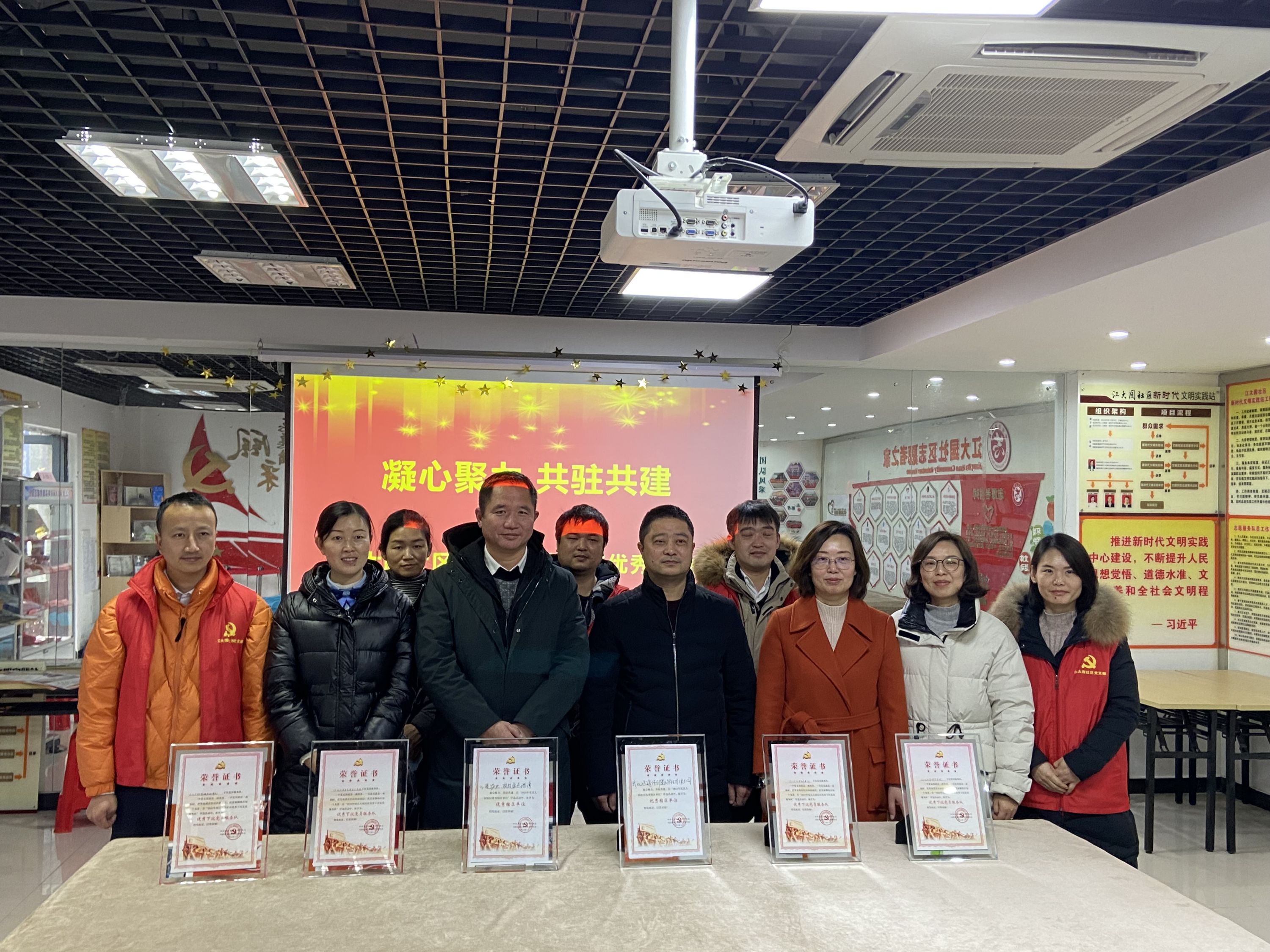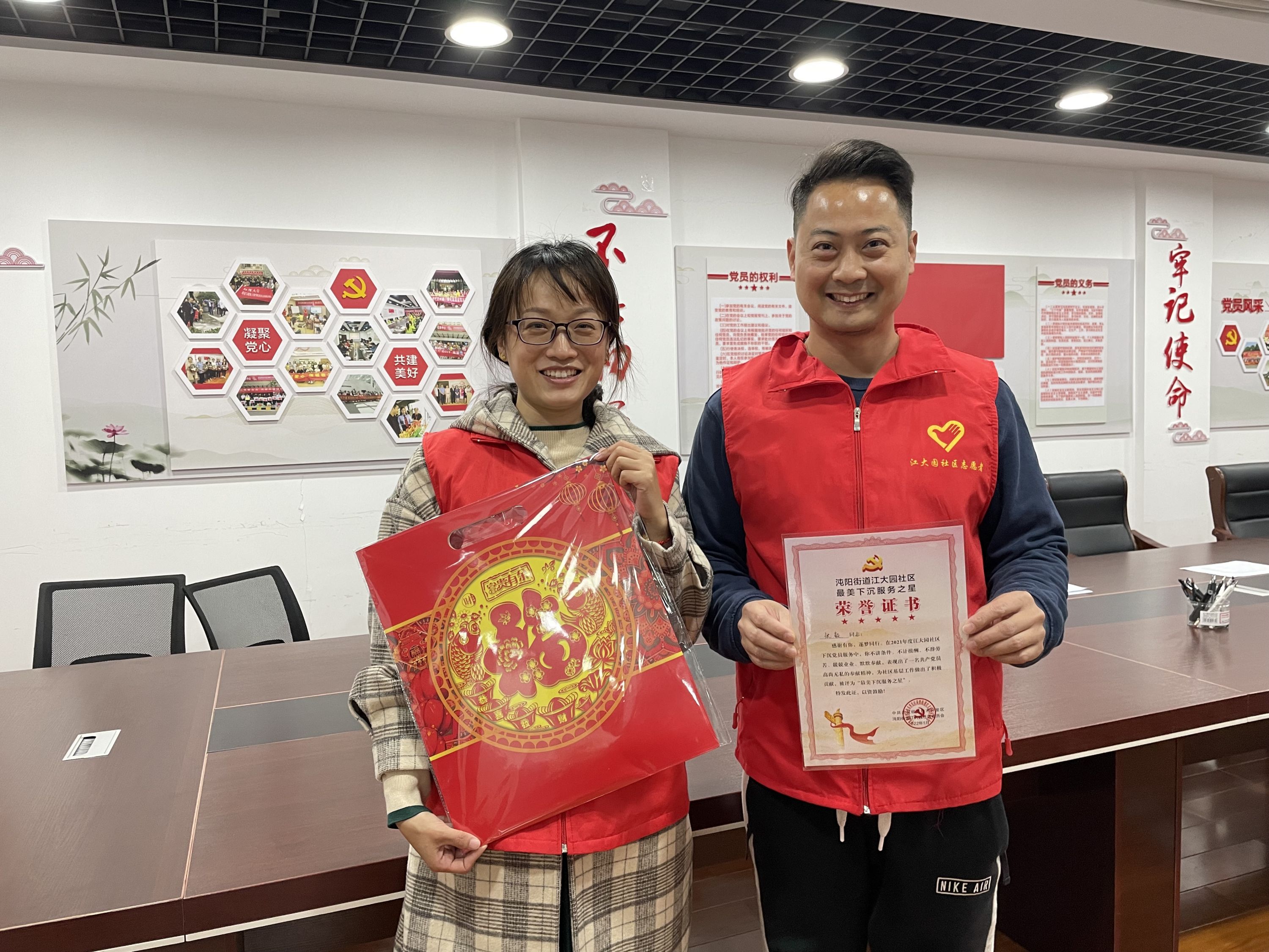 车谷融媒1月28日讯 1月25日,沌阳街江大园社区工作人员将一封封荣誉证书和新春祝福送到了下沉团队手中,感谢他们一年来为社区所做的奉献、为群众所办的实事。