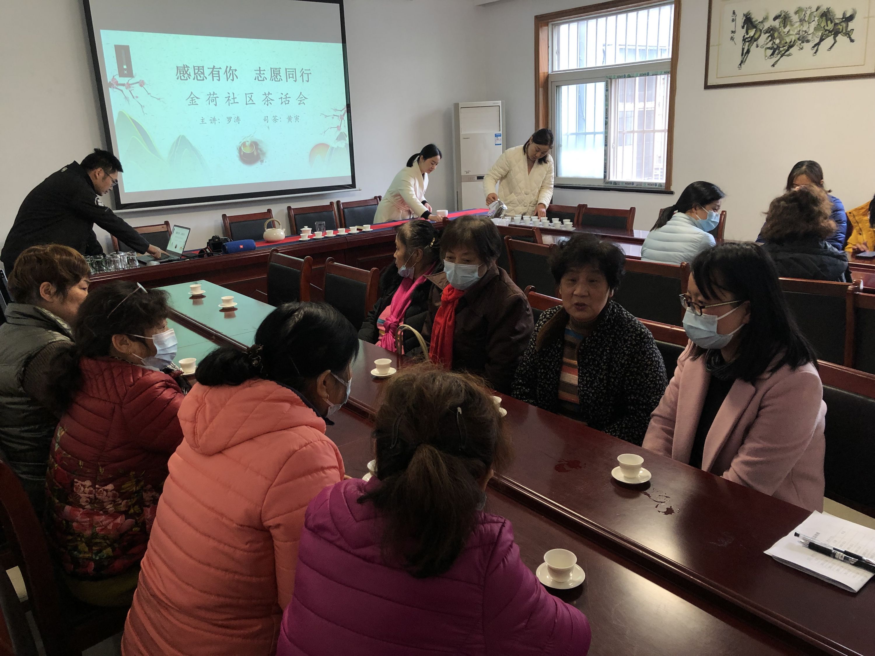 1月27日下午,沌阳街金荷社区邀请专业茶艺师,为志愿者们开展“感恩有你,志愿同行”茶话会活动,感谢他们多年来为社区居民、社区发展做出的贡献。