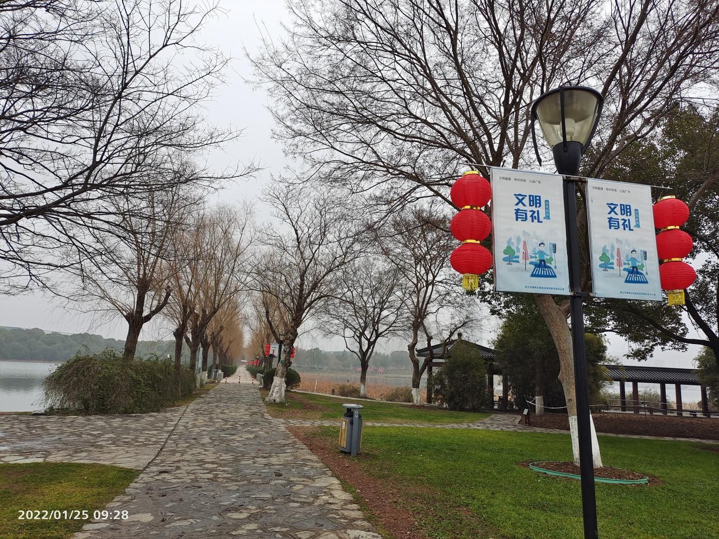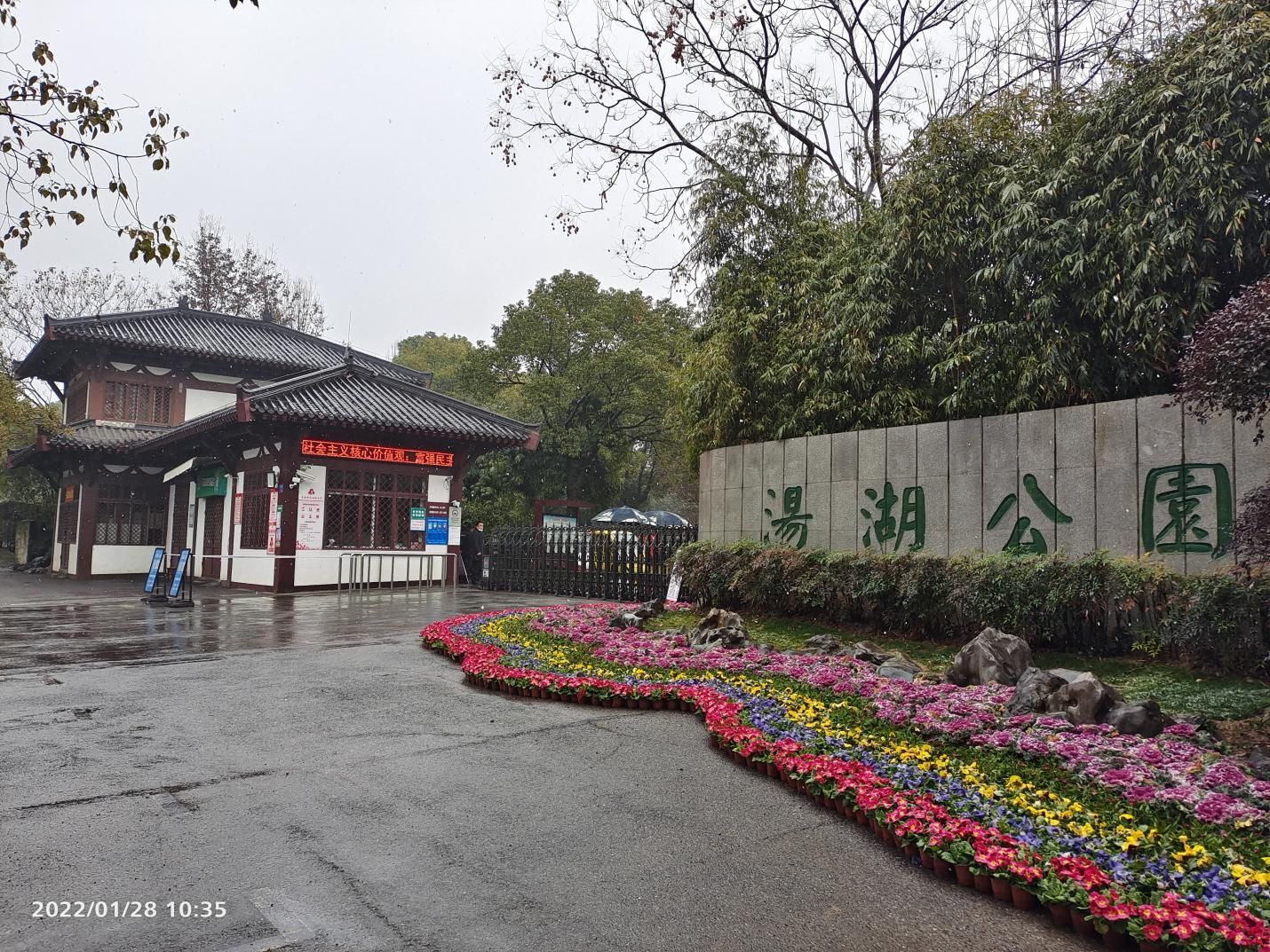公园内的西大门、东大门彩红灯笼高悬、鲜花铺地,绿茵如毯、红梅傲雪,沿着园区道路的路灯杆上悬挂着鲜红的灯笼,路面干净整洁,园区井然有序,经过精心装扮,处处渲染出喜庆和热烈的节日文化氛围。汤湖公园景区已经做好了全方位的准备,静待春暖花开,静待着您的到来。