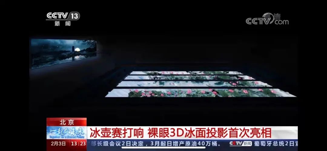 国家速滑馆等五个冰上场馆内,比赛前后及间隙,冰面变“冰屏”,上演美仑美奂的祼眼3D数字立体光影秀。