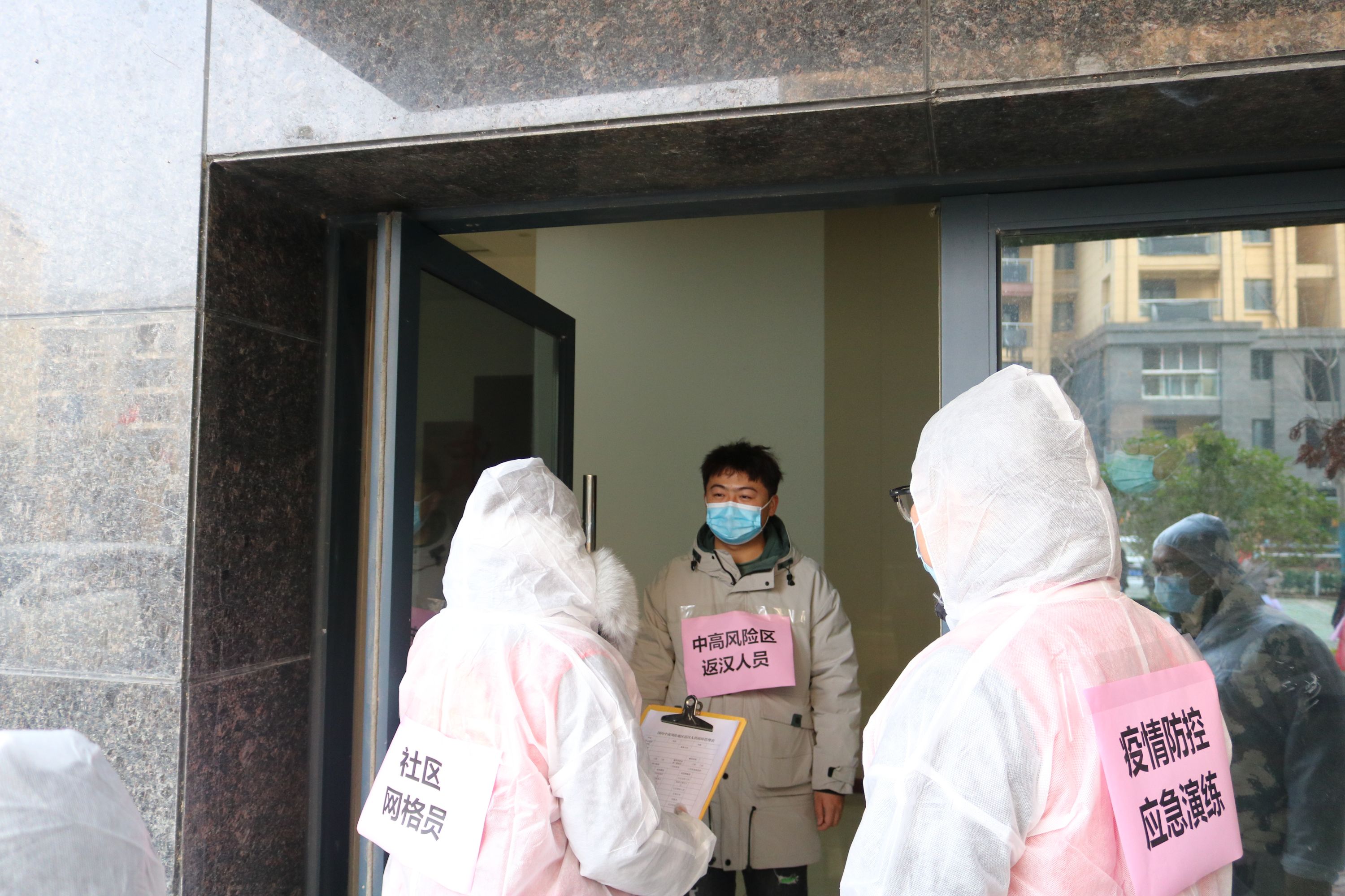 1月17日下午,街道首次疫情防控应急演练在绿荫路社区湘隆小区准时开始。现场模拟绿荫路社区网格员在小区摸排中发现1名省外返汉人员,经核实上报确认隔离点后,联系专业车辆转运至酒店集中隔离,发现其核酸检测呈阳性。