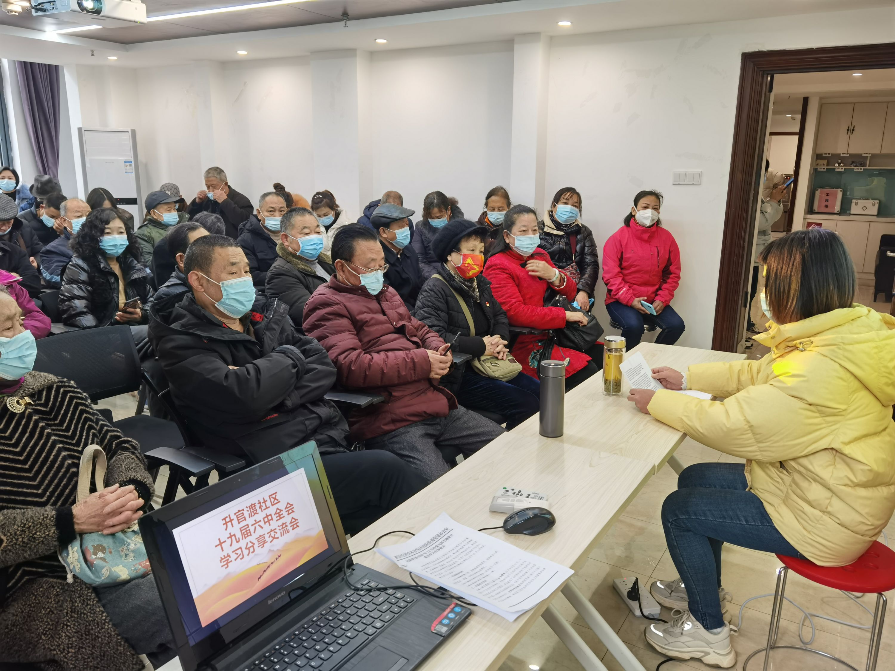 为深入学习宣传贯彻党的十九届六中全会精神,在“学思践悟”中把全会精神内化于心、外化于行,切实把思想和行动统一到党的十九届六中全会上来,让全会精神走深走实,1月18日,升官渡社区组织全体党员干部开展以“学习十九届六中全会精神——‘我要怎么干’”为主题的分享会。在解读党的十九届六中全会环节,社区副书记引导全体干部对六中全会主要成果进行了归纳,并从六个方面对全会精神作了学习解读。