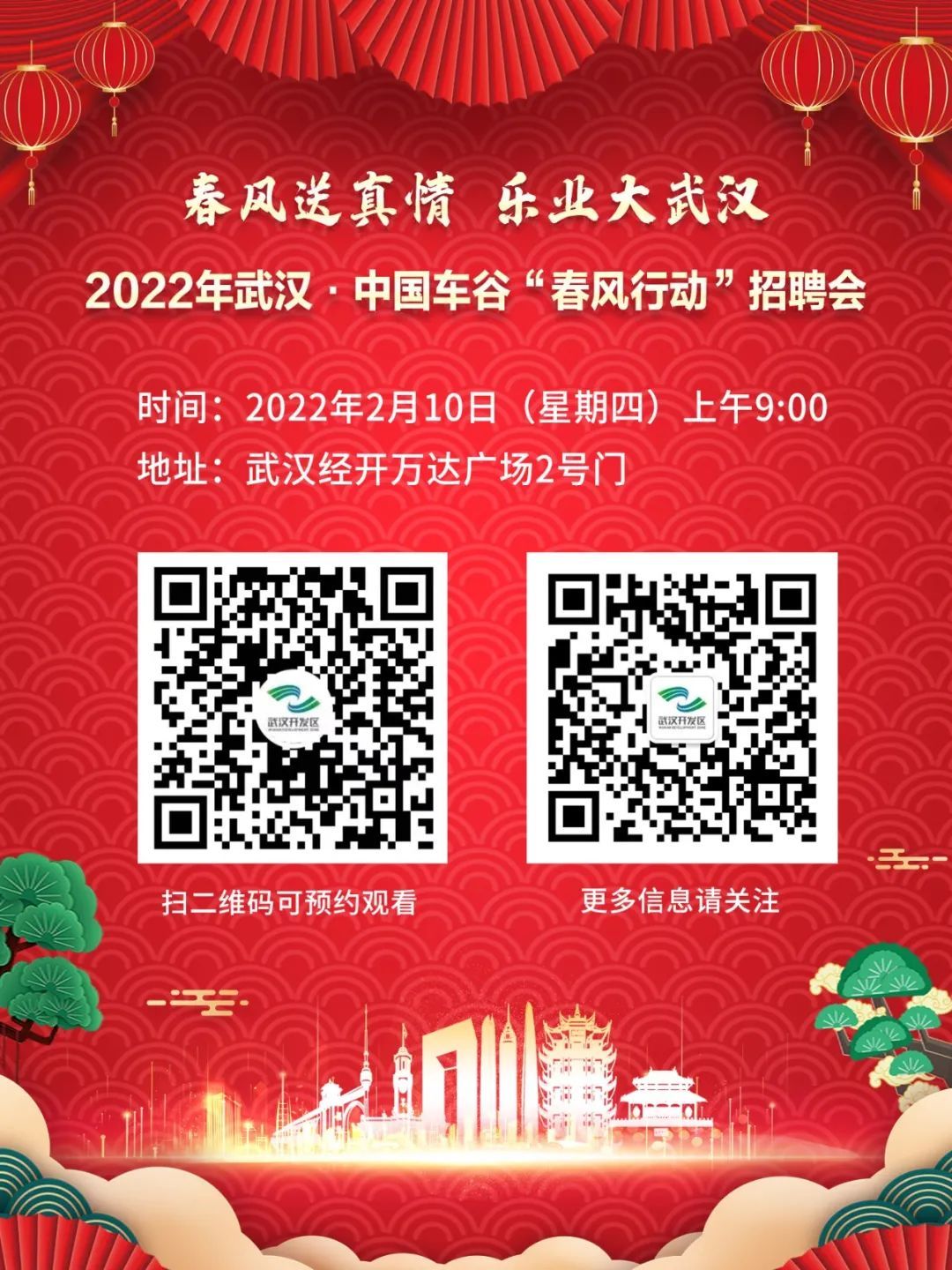 据悉,今年“春风行动”期间,武汉经开区将举办13场线上线下招聘会,每月的第二周和第四周的周五开展直播招聘活动,具体请关注微信公众号“武汉经开区公共招聘”,查询更多详情。