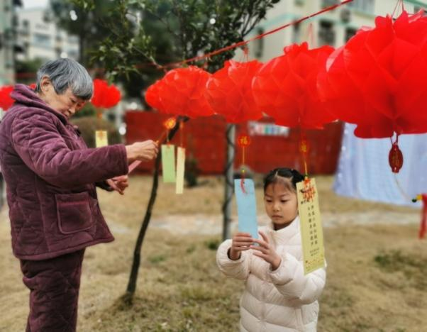 活动现场,一条条五彩的趣味谜语如彩带般悬挂,涵盖传统字谜、消防知识、健康生活等内容的谜面趣味无穷,精美的小礼物为前来参与活动的居民们更添几分欢欣。