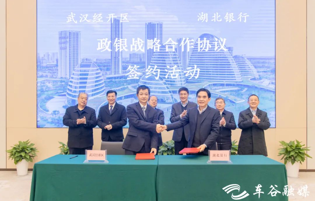 车谷融媒2月17日讯 2月17日,武汉经开区与湖北银行签署政银战略合作协议,双方将构建更加紧密、互信的长期稳定政银战略合作关系,助力经开区“二次创业”,加快建设车谷副城和“3335”现代产业体系,实现双方互利共赢。市委常委、武汉经开区工委书记刘子清,湖北银行党委书记、董事长刘志高出席签约仪式并座谈,工委副书记、区长唐超,湖北银行行长赵军代表双方签署政银战略合作协议。