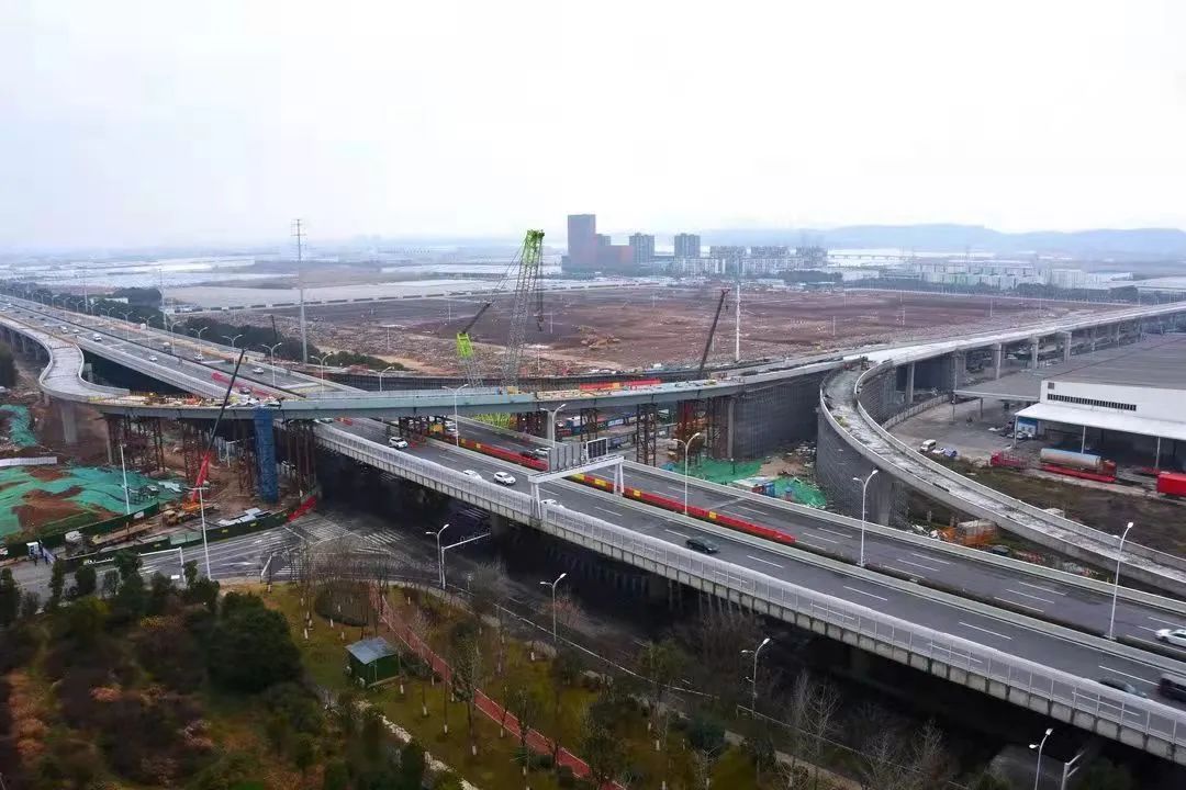 2月18日晚,随着上跨东风大道匝道桥的最后一节段钢箱梁平稳精确地落在桥墩上,龙灵山周边配套基础设施项目控制性节点全力二路高架桥主体工程顺利架设完成,开工一年多的龙灵山周边配套基础设施项目实现了高架桥全线贯通。