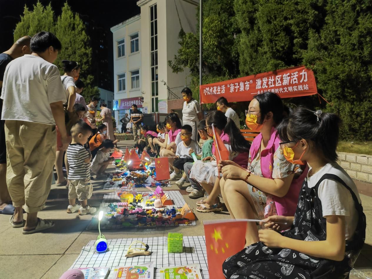 车谷融媒10月10日讯 国庆期间,沌阳街永久社区新时代文明实践站组织辖区内儿童与家长共同开展“小摊点亮生活‘亲子集市'激发社区新活力”活动。孩子们将闲置的玩具、书本、手工作品、绘画等各类物品,放在自己的摊位上售卖。