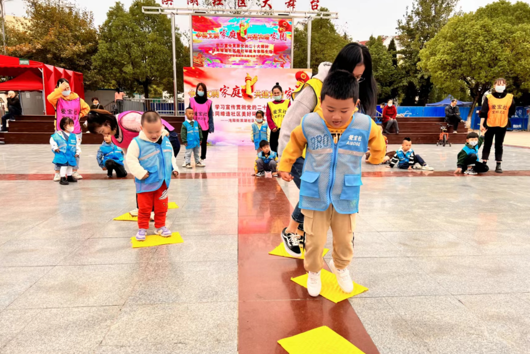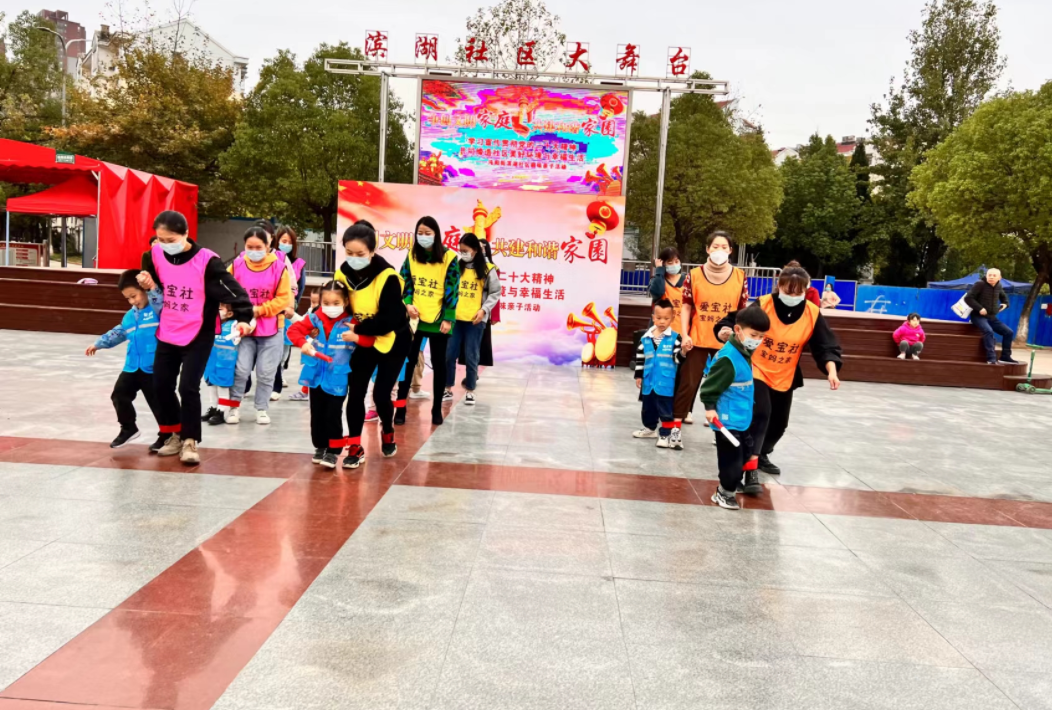 车谷融媒10月31日讯 10月26日,武汉经开区沌阳街道滨湖社区开展“争创文明家庭 共建和谐家园”趣味亲子活动。滨湖小区、洪山小区、洪山府郡3个小区共15组亲子家庭参加活动。
