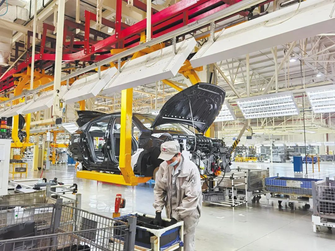 “党的二十大报告对发展制造业提出了一系列新目标、新要求、新举措,为汽车产业发展提供了广阔空间。”王栋说,为适应汽车消费升级需要,二厂通过开展效率提升行动,优化了生产流程管理,并引进一系列新生产设备,比如总装车间引进汽车360度全景影像标定设备、自动化全景天窗安装机器人等。除了总装车间外,焊装车间的整体自动化率达到了93%。