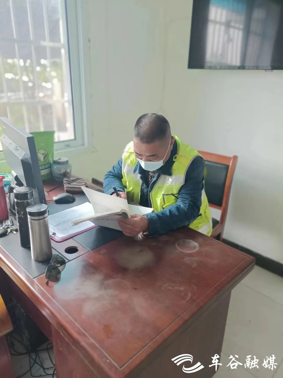 中午,杨学武回到管理处,认真填写巡湖日志。这样的巡湖日志,他和同事们已经记了几十本。