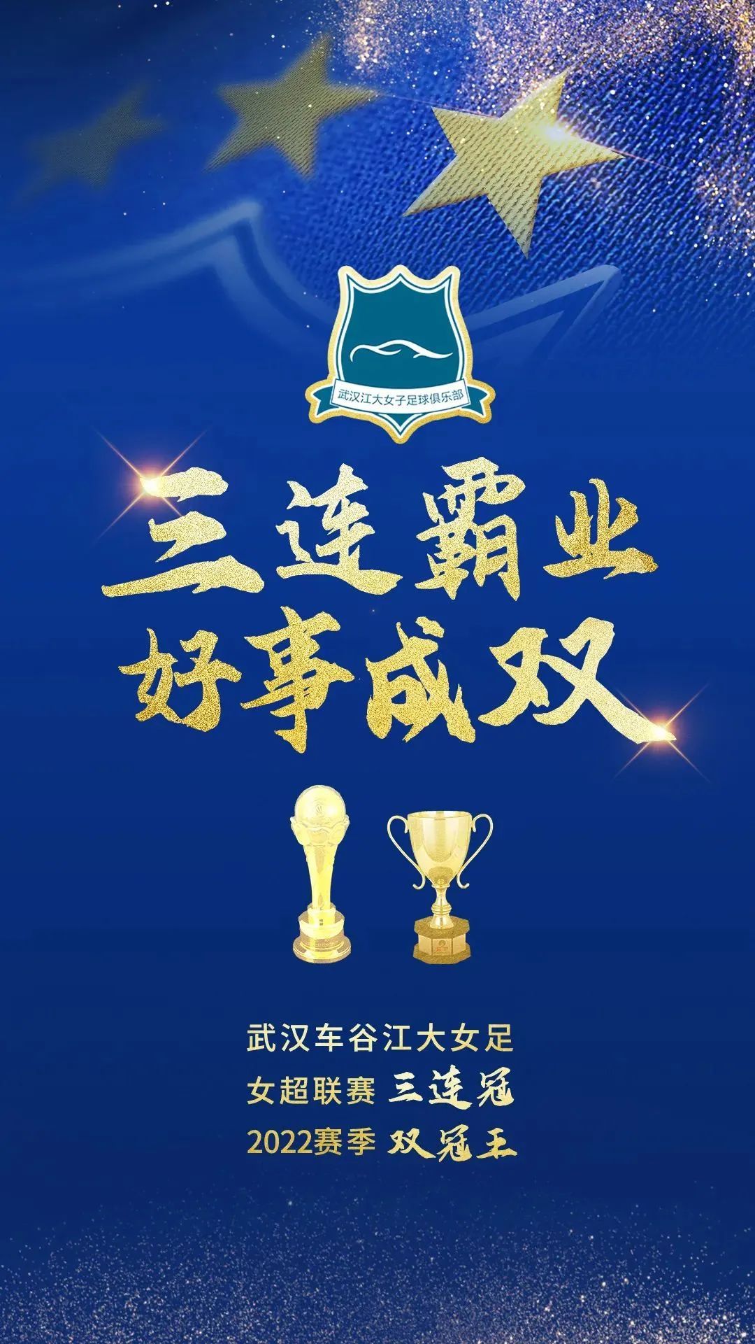 这是武汉女足连续第三年夺得女超联赛冠军,也是她们首次在单赛季同时夺得联赛和杯赛冠军。
