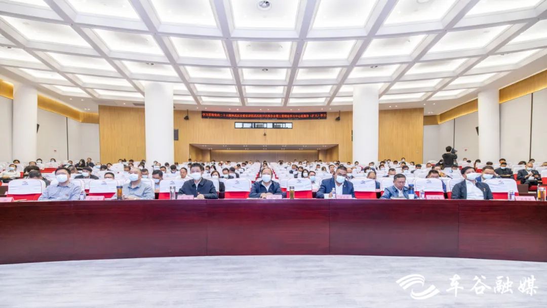 车谷融媒11月9日讯 11月9日,学习贯彻党的二十大精神武汉市委宣讲团武汉经开区报告会暨工委理论学习中心组集体(扩大)学习举行,这是市委宣讲团全市集中宣讲的首场报告会。市委宣讲团成员、华中科技大学国家治理研究院院长、哲学学院教授欧阳康作报告。市委常委、武汉经开区工委书记刘子清主持并讲话。