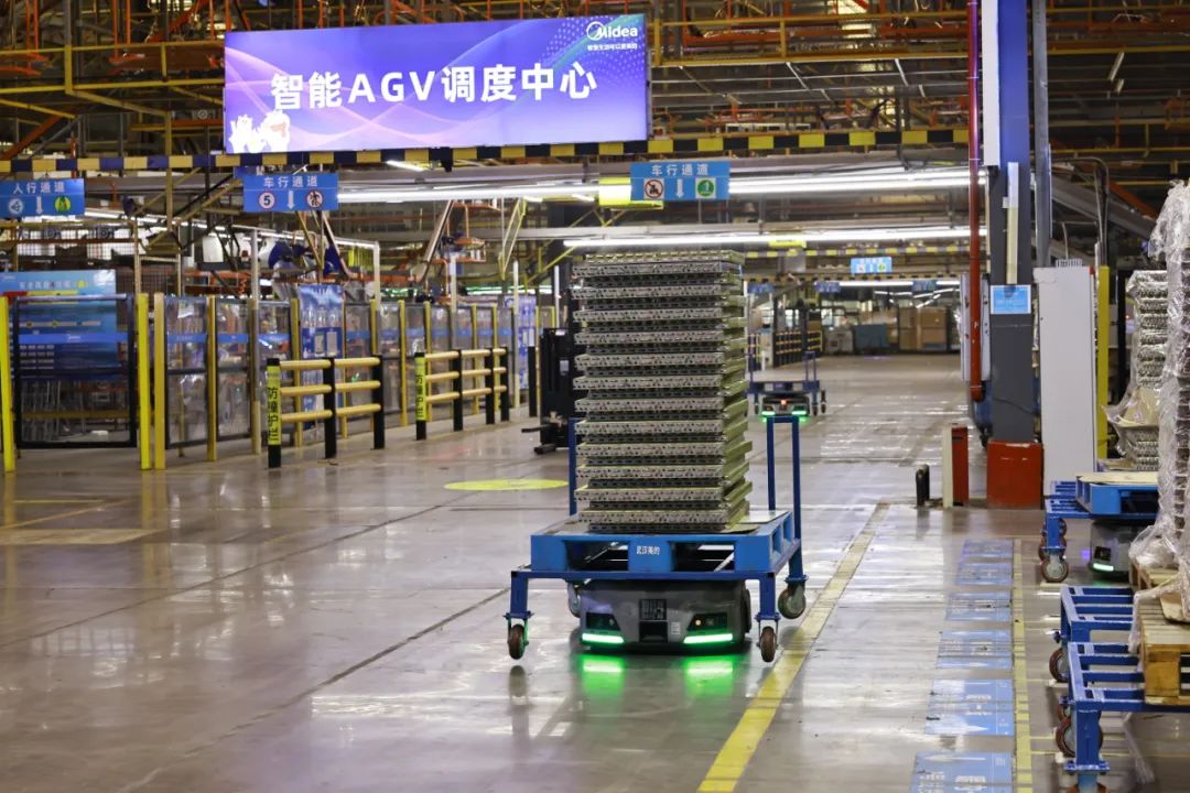 11月10日,武汉经开区美的暖通工业园暖通总装车间,一台台5G+AGV机器人和无人叉车在车间内如火如荼地忙碌着。它们按照程序预先设定的路线,驮着各种设备物料运输到指定地点。