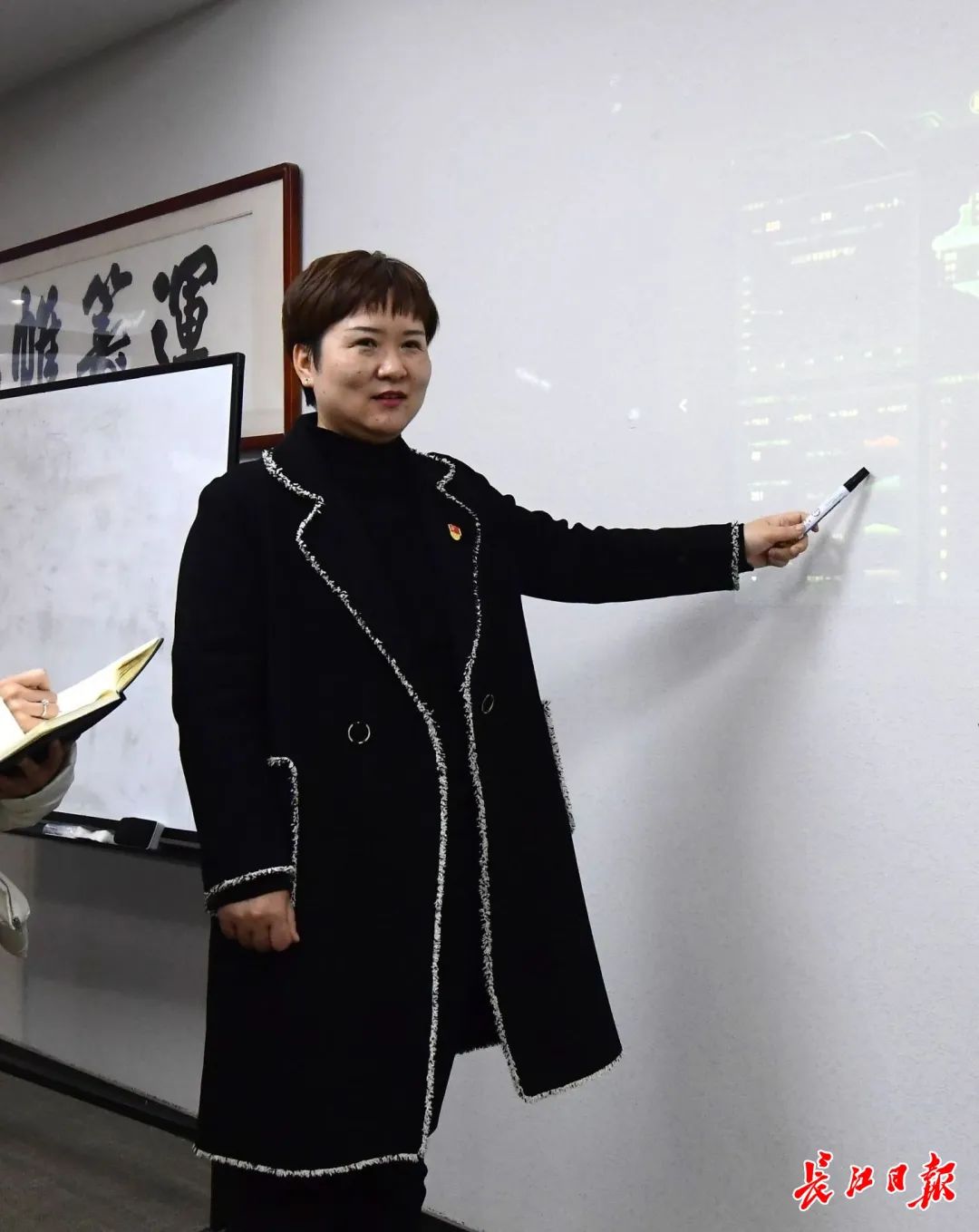 ▲中德华建湖北分公司党支部书记黄海红与团队一起,认真分析客户数据统计结果,更好地保质保量完成咨询任务。长江日报记者刘斌 摄