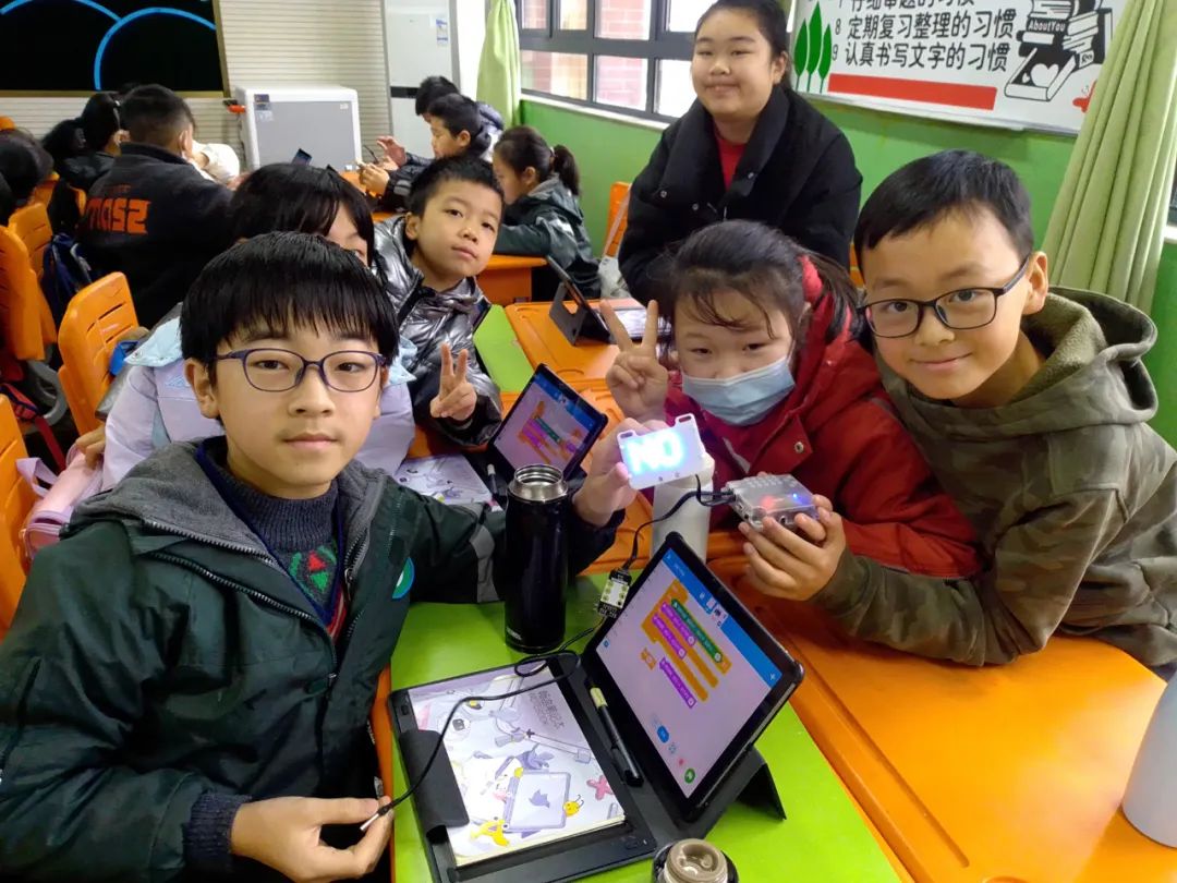 据了解,新华小学借助智慧教育产品和应用构建科技特色课程,打造编程、机器人等特色校队,在省、市机器人创新和创意编程等比赛中多次获奖,师生创新共获得了9项国家专利、1项市级荣誉。