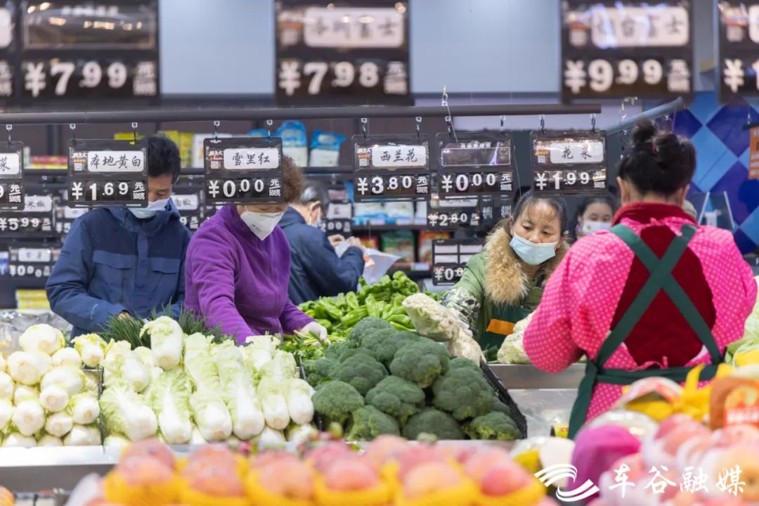 ▲社区门口,一家新近开张的超市内,瓜果蔬菜、水产禽蛋应有尽有,满足了社区居民生活需求。