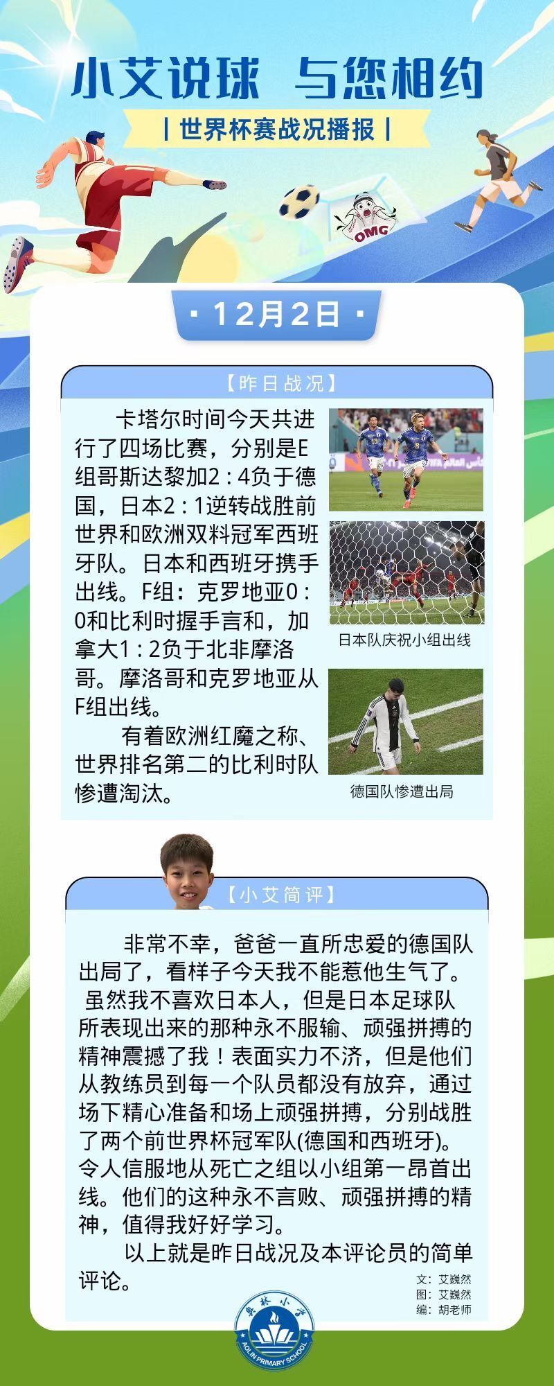 在这次家校共育活动中,学校两名学生更是在家长的支持下开辟了属于自己的“足球解说栏目”。