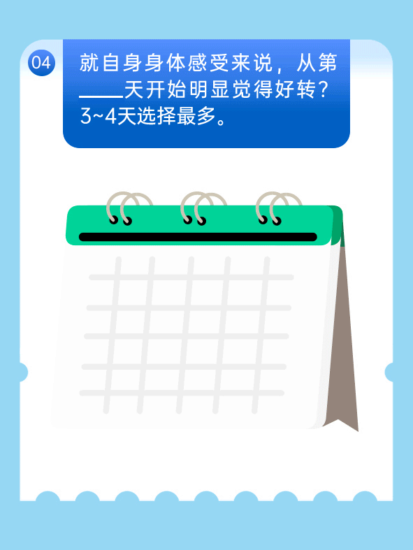 调查中,参与的康复者们表示,就自身身体感受来说,半数以上从第3—4天开始觉得有所好转,投票前两位的分别是:第3天(29%)、第4天(28%)。