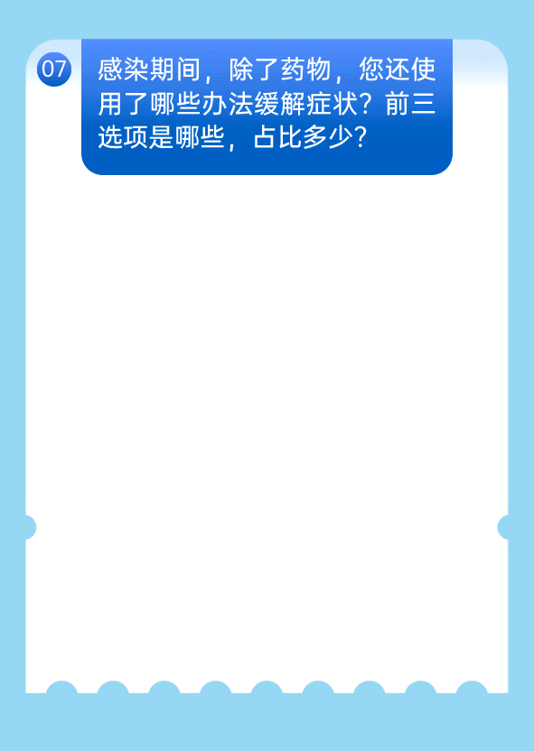 感染期间,除了药物,康复者们还通过大量喝水(92%)、睡觉(79%)和盐蒸橙子(16%)的办法,来缓解身体不适症状。