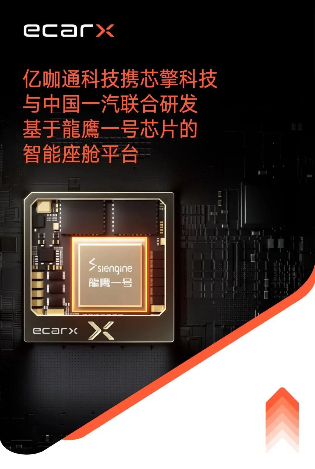 2月7日,全球出行科技公司亿咖通科技(纳斯达克股份代码:ECX)与其投资的领先的车规级芯片企业芯擎科技共同宣布,将与中国第一汽车股份有限公司(简称“中国一汽”)深化战略合作,联合研发基于“龍鹰一号”芯片打造的智能座舱平台。该款智能座舱计划于2023年年底实现量产并搭载于中国一汽车型之上。