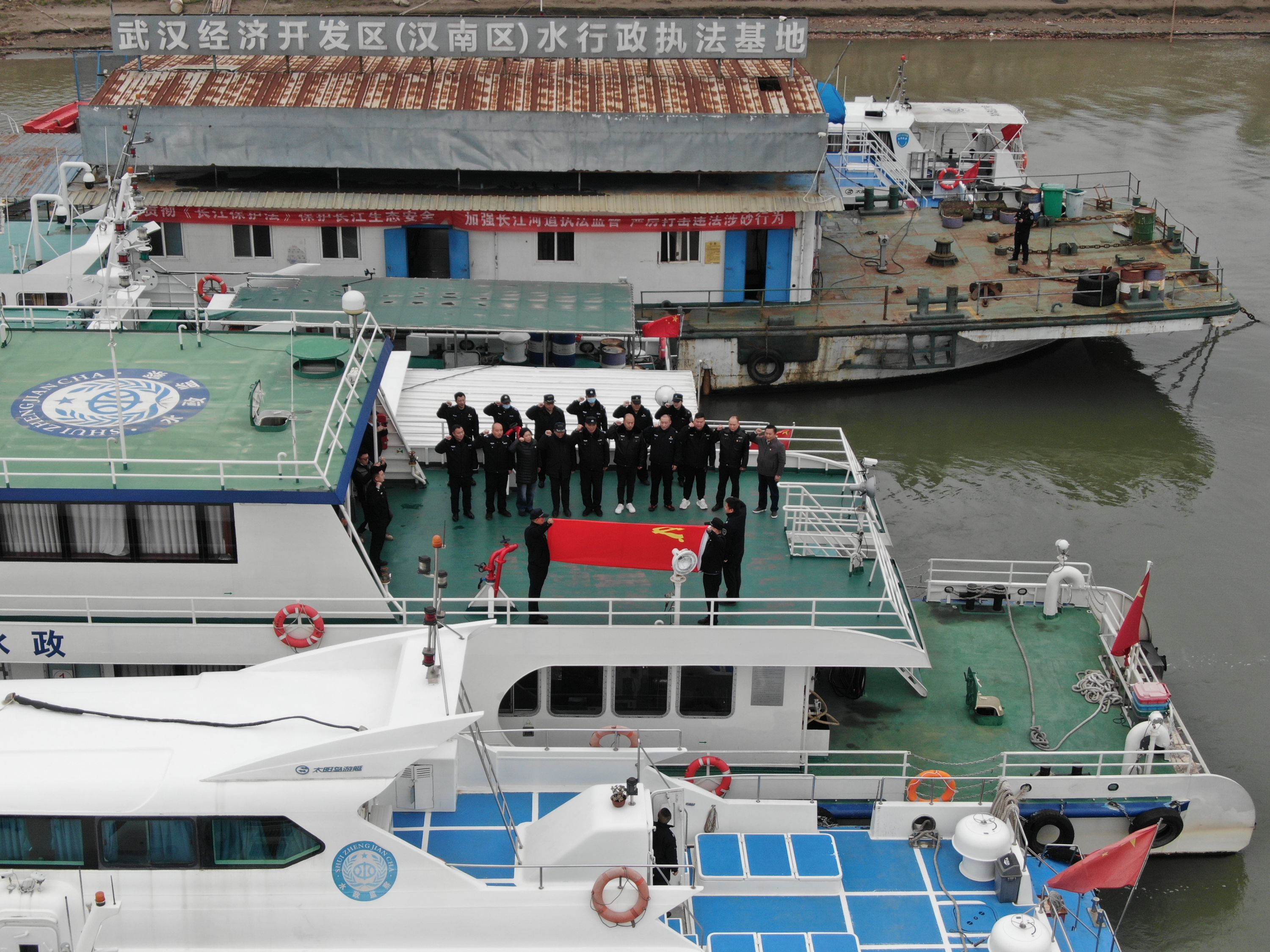 车谷融媒2月13日讯 2月10日,由武汉经开区水务和湖泊局联合汉阳、江夏、武昌、洪山等区组成的“长江上游战区”,携手金口海事处、长航公安汉南所,在武汉市水务执法总队的指导下,开展“不改护水心”主题党日活动。