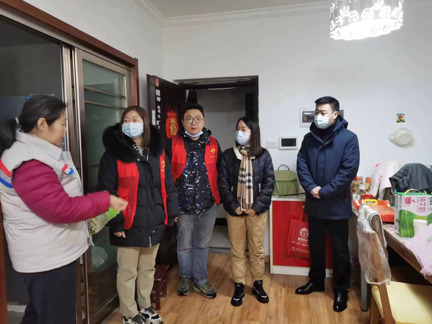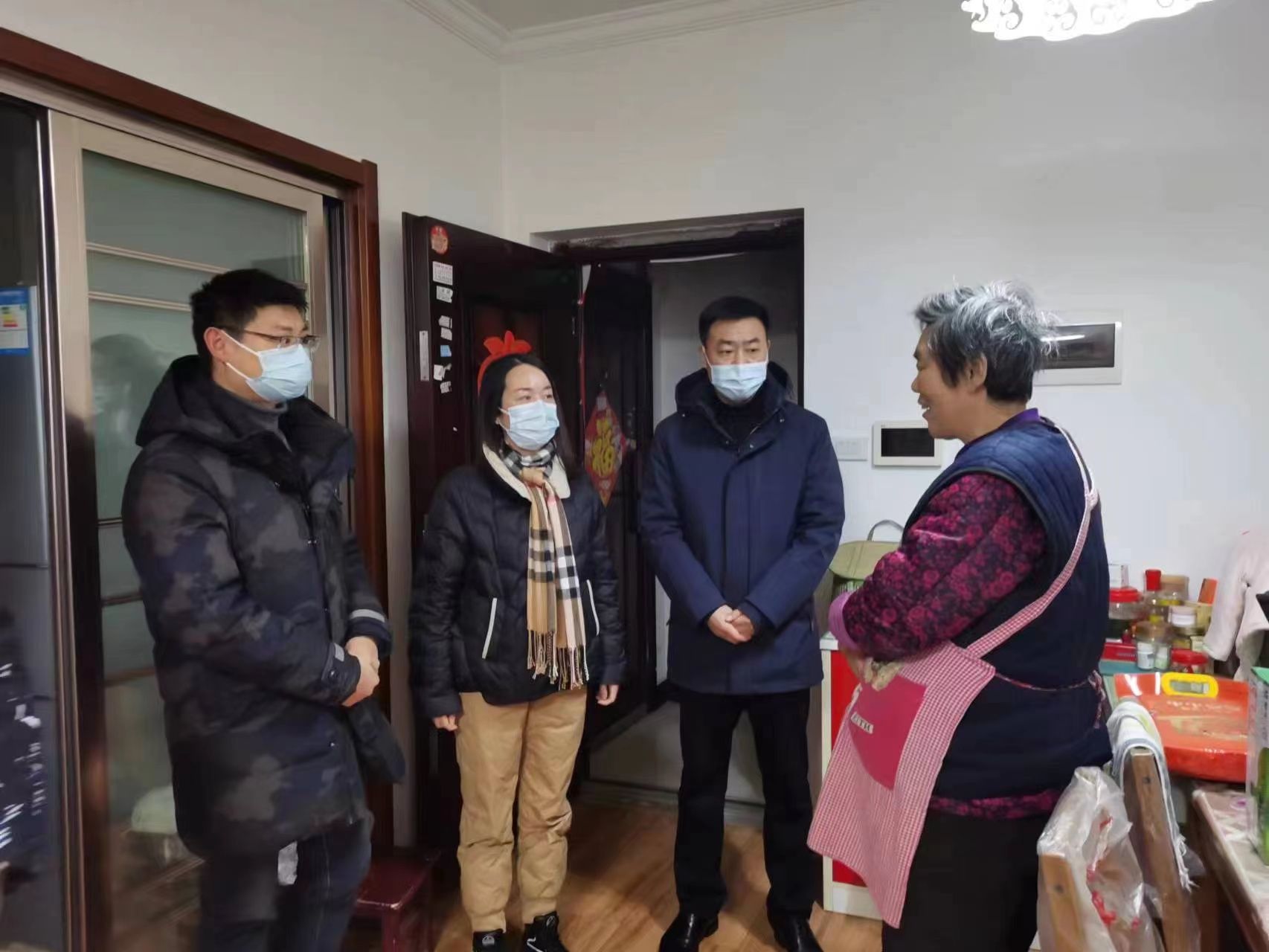 在居民家中,社区相关负责人详细询问了其身体、生活等情况,并提醒他们近期气温变化较大,要注意增减衣物,如果遇到困难,可以及时联系社区。