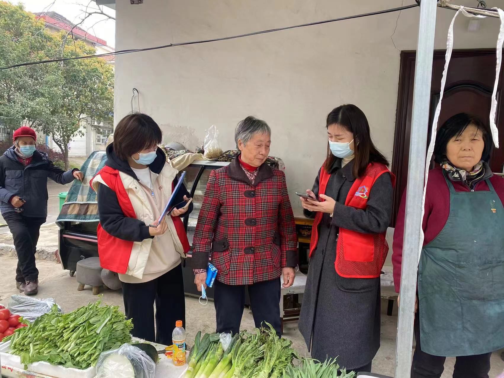 “您好,我们是社区网格员,正在进行辖区人员信息采集,请您扫小程序码接龙,登记您及家人的信息,谢谢您的配合。”