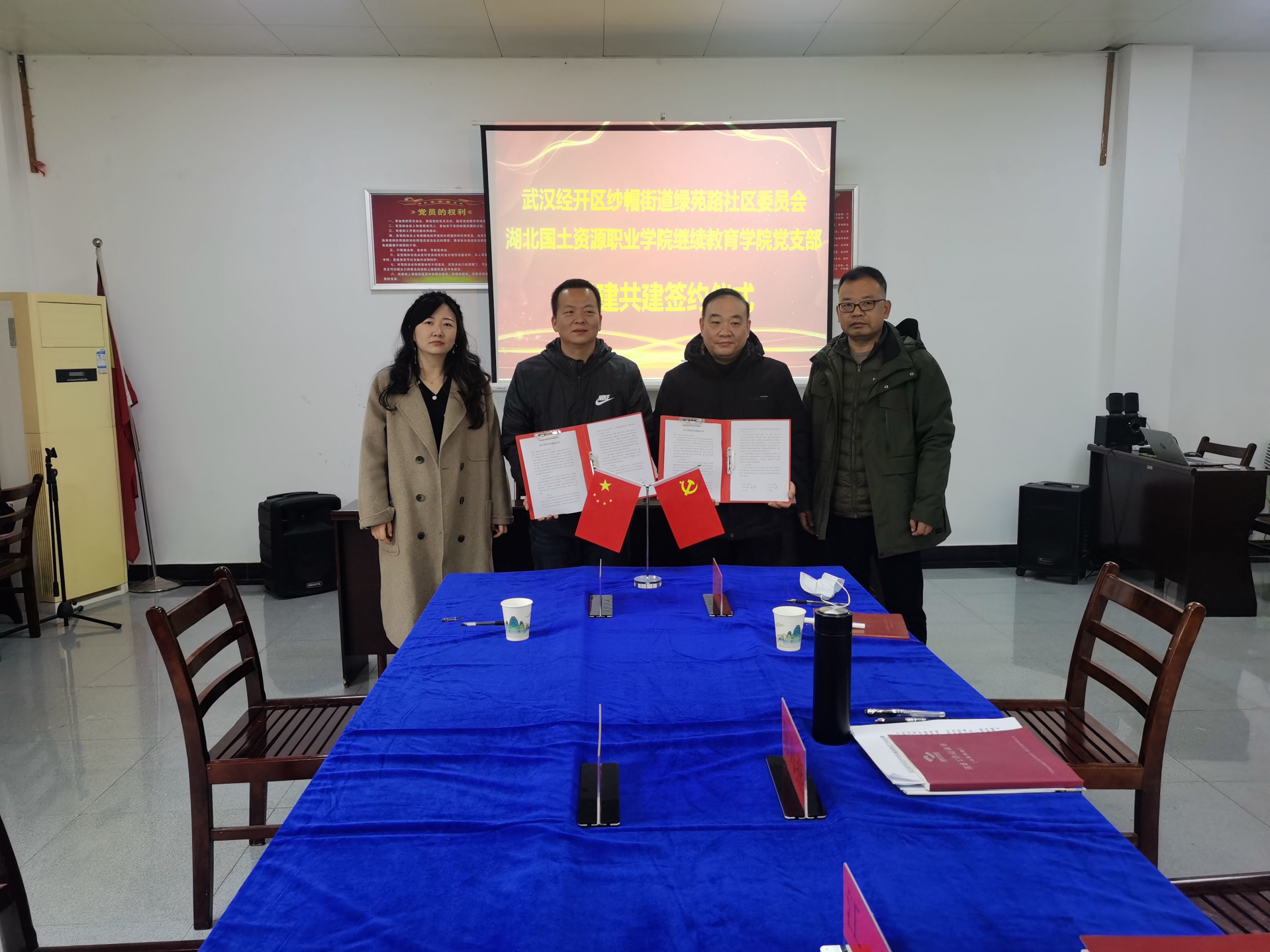 3月24日,绿苑路社区联合湖北国土资源职业学院继续教育学院党支部、学校团支部召开联席会,就校社结对共建相关事项进行了深入交流,签订了共建共享协议。