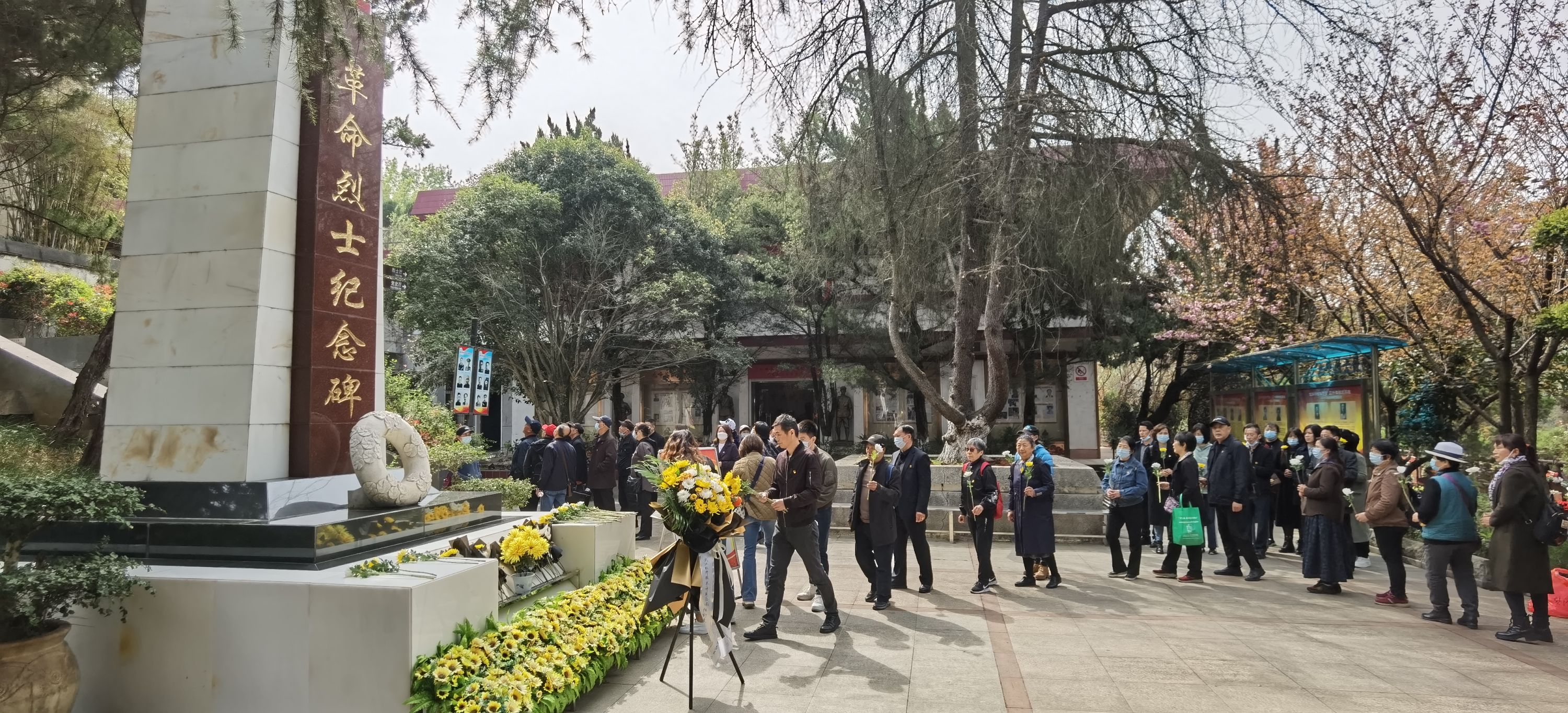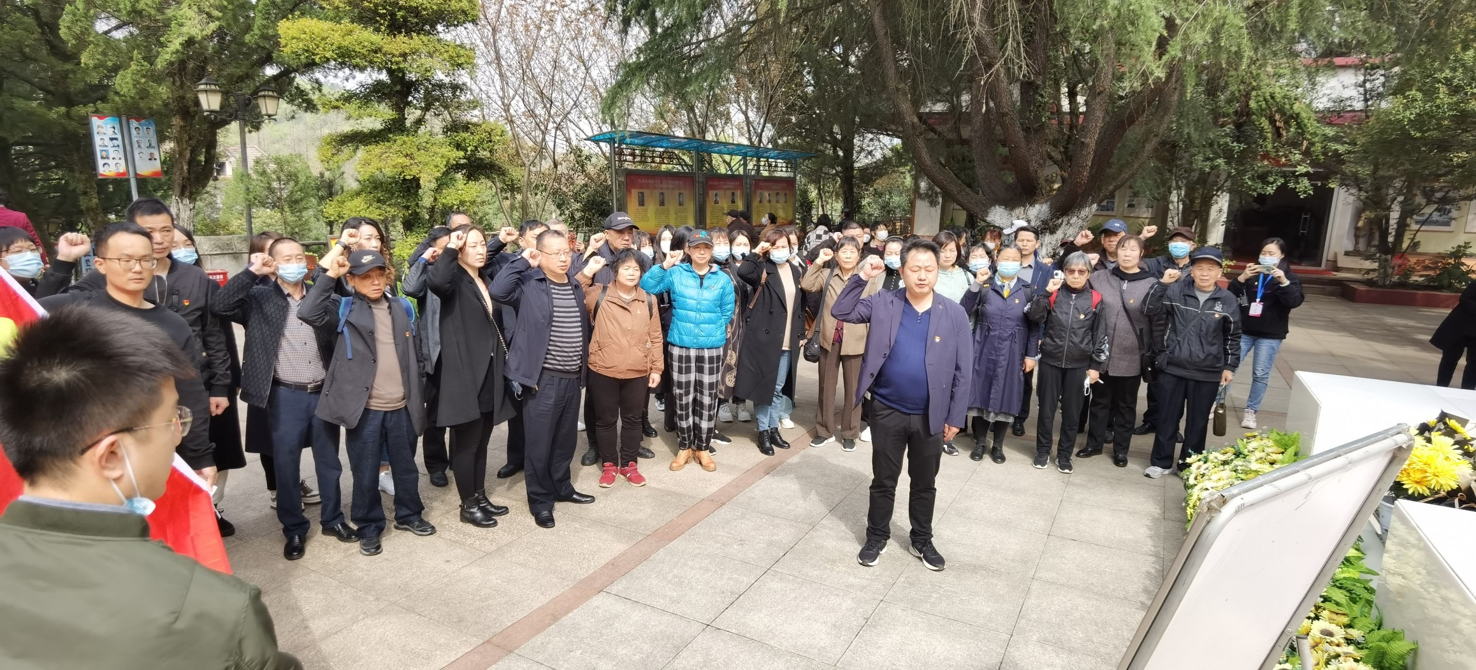 在庄严肃穆的九峰山革命烈士纪念碑前,全体人员怀着敬意和哀思向烈士默哀鞠躬、敬献鲜花。随后党员们在社区党委书记的带领下,举起右拳重温入党誓词,铿锵誓言回响在陵园上空。全体人员还参观了革命烈士纪念馆,深切缅怀革命烈士的丰功伟绩。