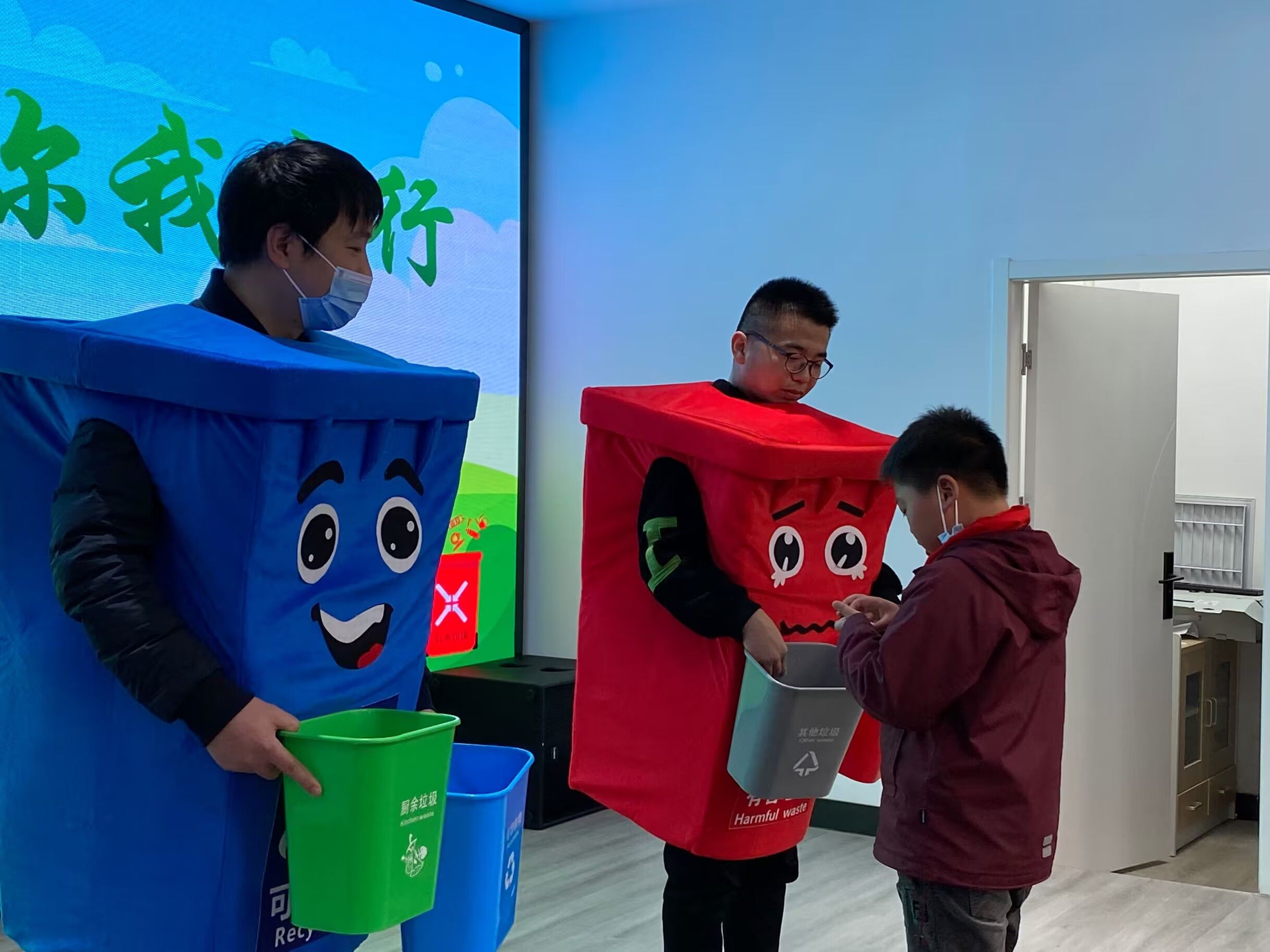 活动中,大家通过观看宣教片,了解到垃圾分类的重要性,沌口小学袁随老师为现场的学生和居民们带来了一节“垃圾科学分类”微课程,详细讲解了生活垃圾如何科学分类,随后,学生们和居民结成互助小组,进行分类垃圾桶模型的手工制作,社区的工作人员穿上玩偶服,和现场的学生、居民玩起了生活垃圾的拟投放体验游戏。孩子们和居民们走出户外,一同清理社区垃圾,向过往居民发放《垃圾分类倡议书》。